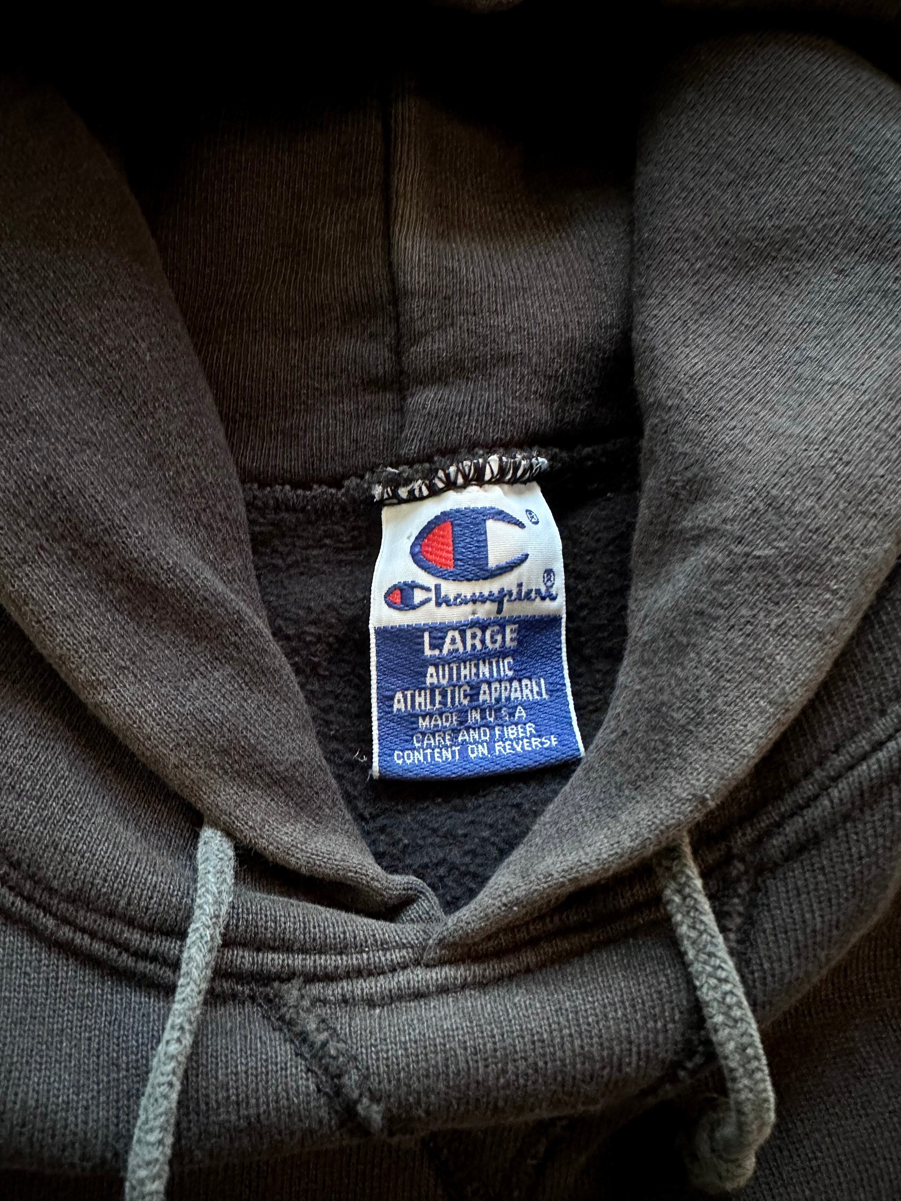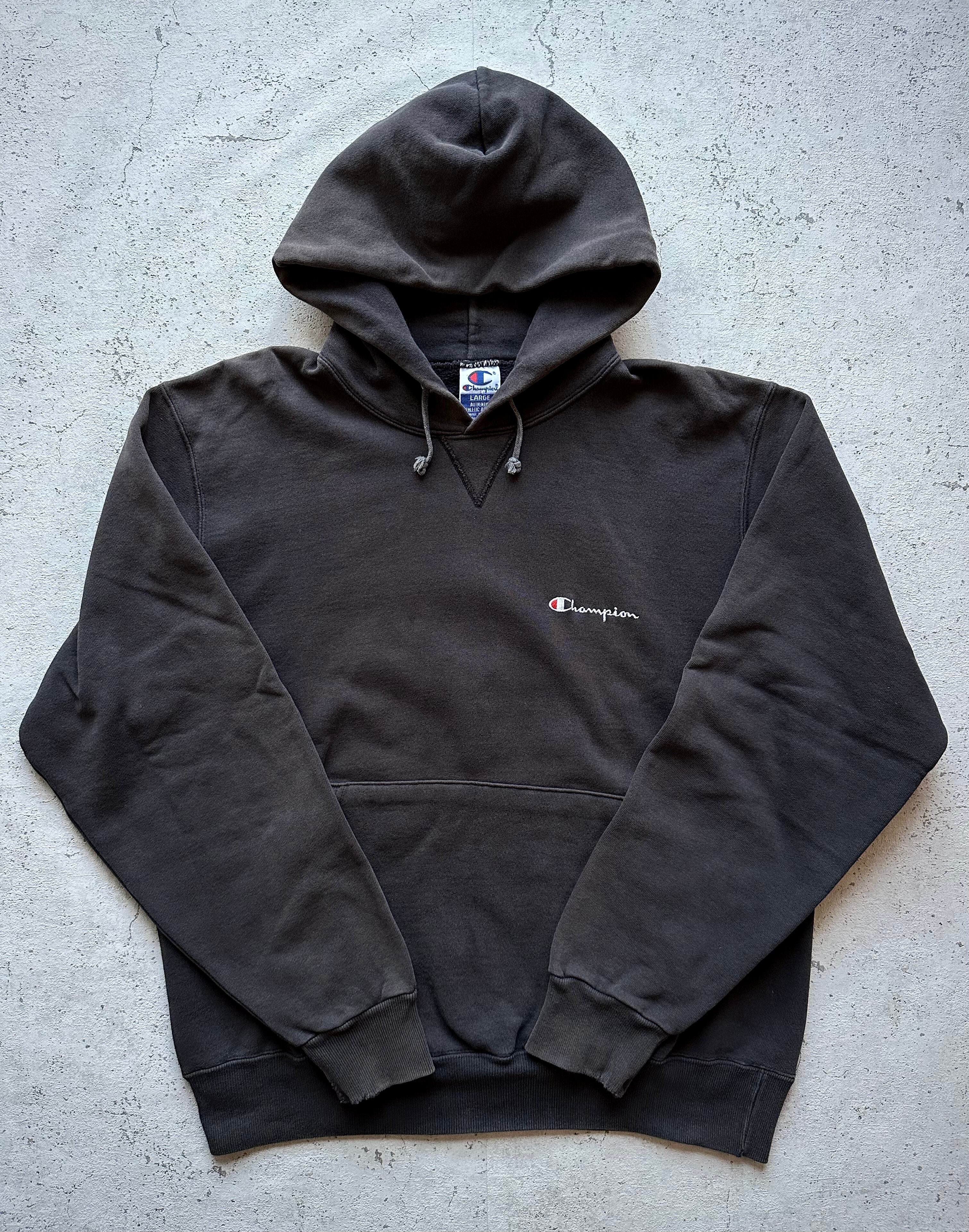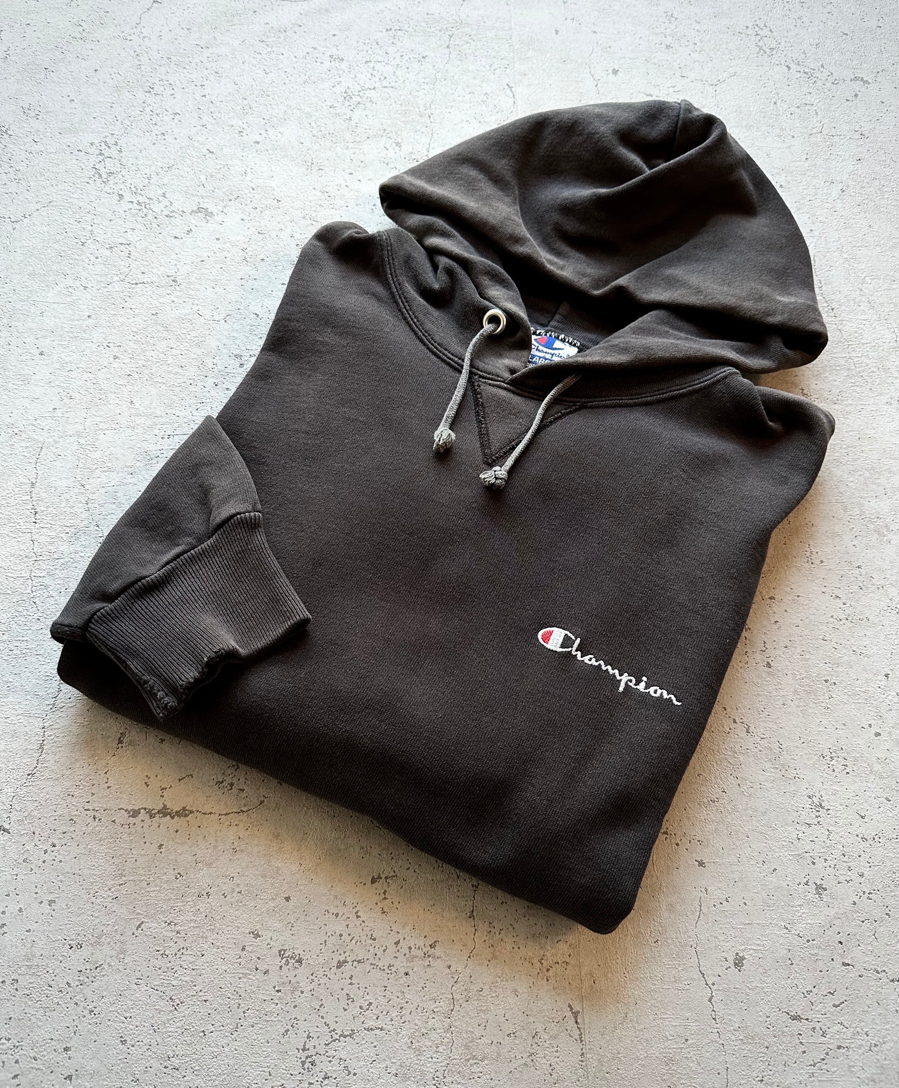 90s〜 MADE IN USA “ CHAMPION ” FRONT-V P/O SWEAT PARKA BLACK OLD VINTAGE 。