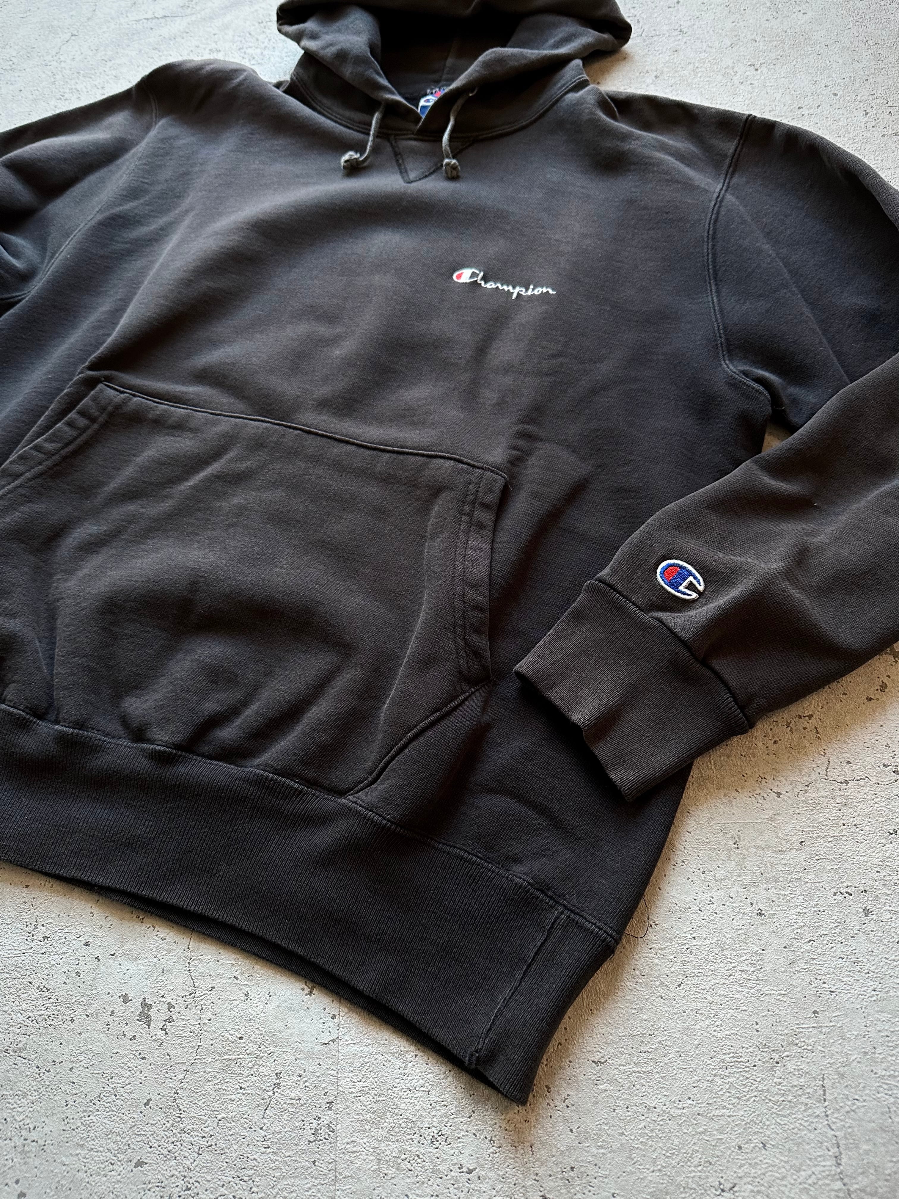 90s USA製 “ CHAMPION ” FRONT-V P/O SWEAT PARKA BLACK OLD VINTAGE アメリカ製 チャンピオン 前V プルオーバー スウェットパーカー ブラック オールド ビンテージ