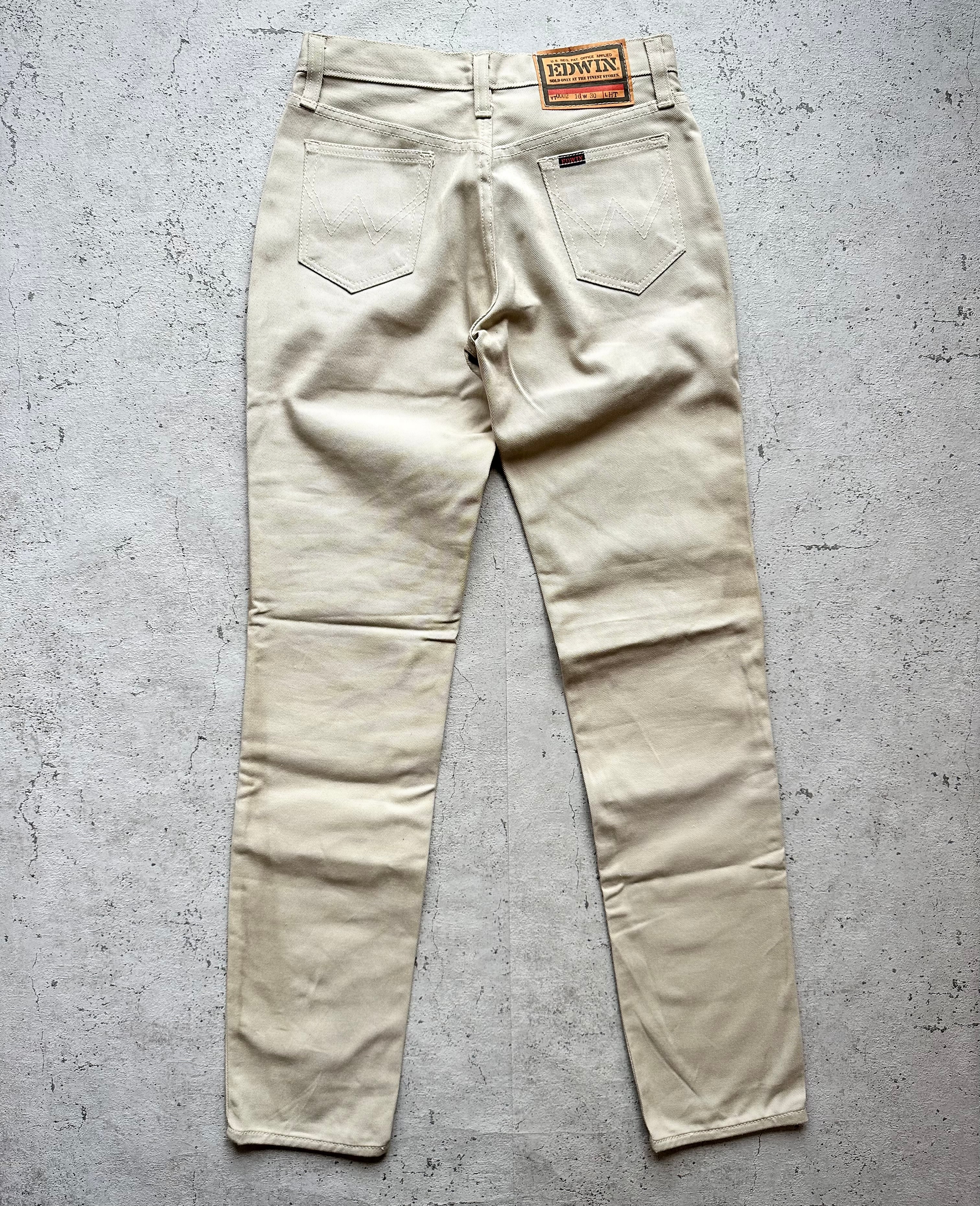 DEAD STOCK 70s〜 “ EDWIN ” 5PKT TWILL SLIM PANTS IVORY OLD VINTAGE 。