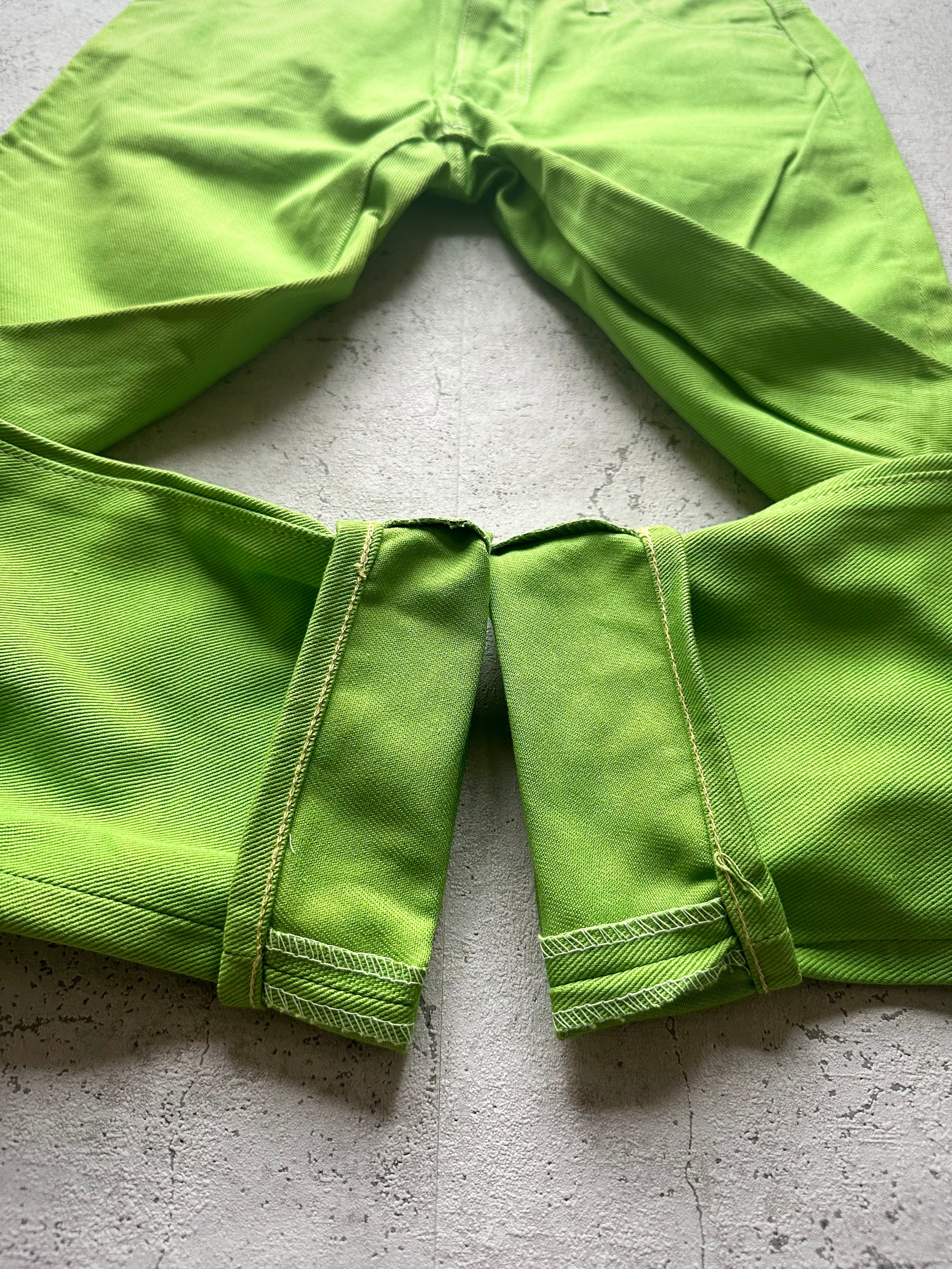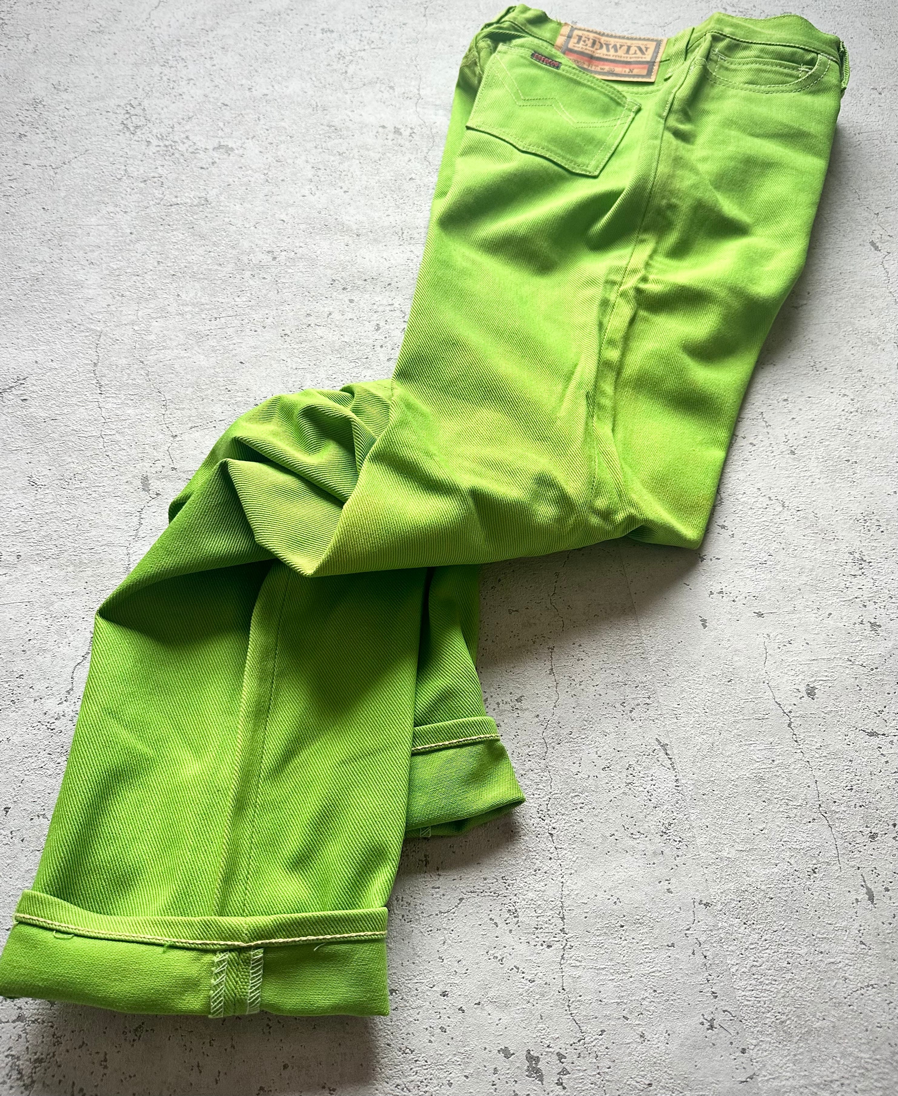 DEAD STOCK 70s〜 “ EDWIN ” 5PKT TWILL SLIM PANTS ACID GREEN OLD VINTAGE 。