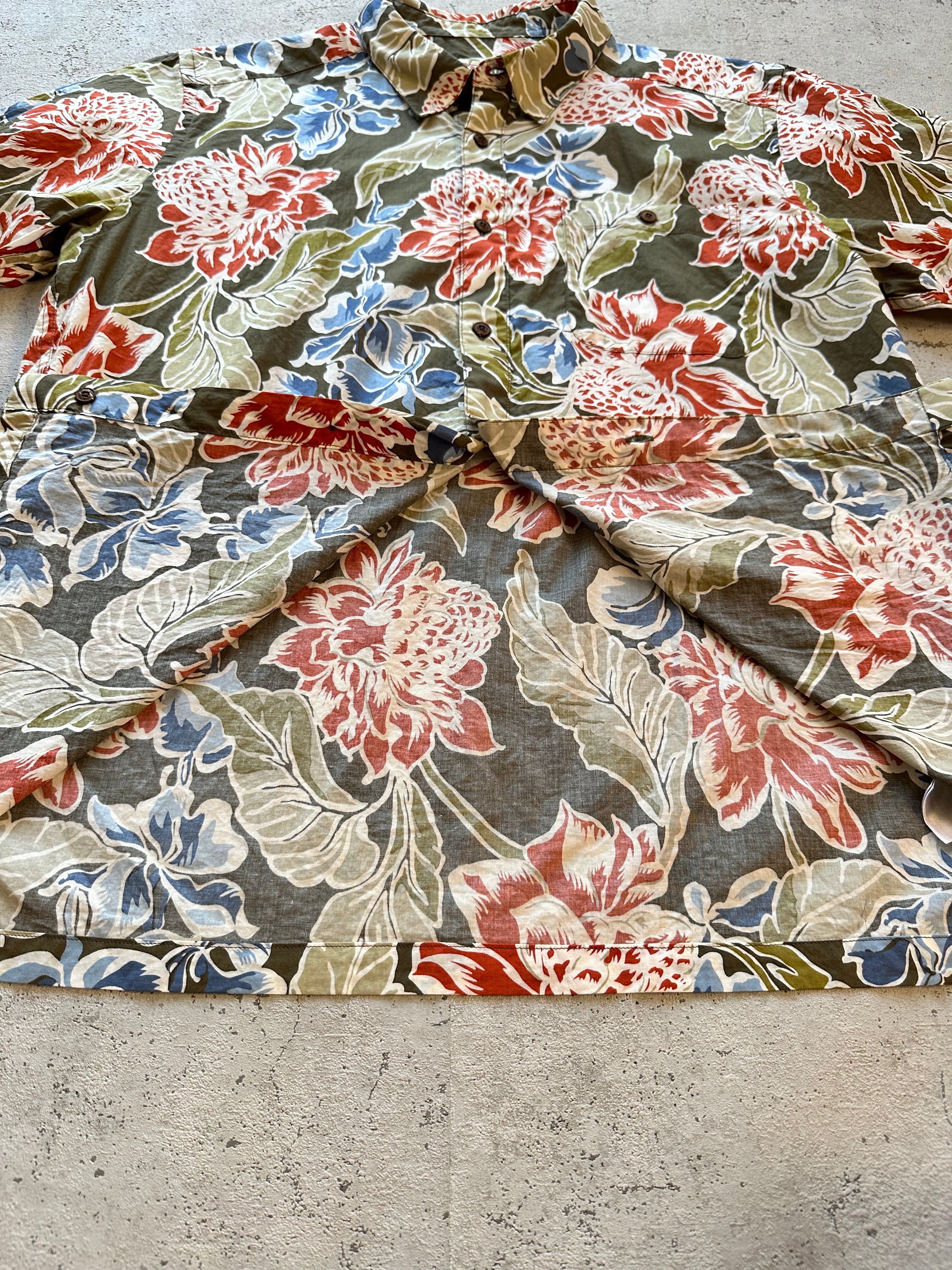 オーガニックコットン100%の柔らかな生地にライトなオリーブをベースにした雰囲気の良いトーチジンジャー.トロピカルパターン、そんなに古いモデルではありませんが“PATALOHA”でも人気の高い廃番シリーズだと思いますので、お好きな方や探されていた方は是非この機会にいかがでしょうか。