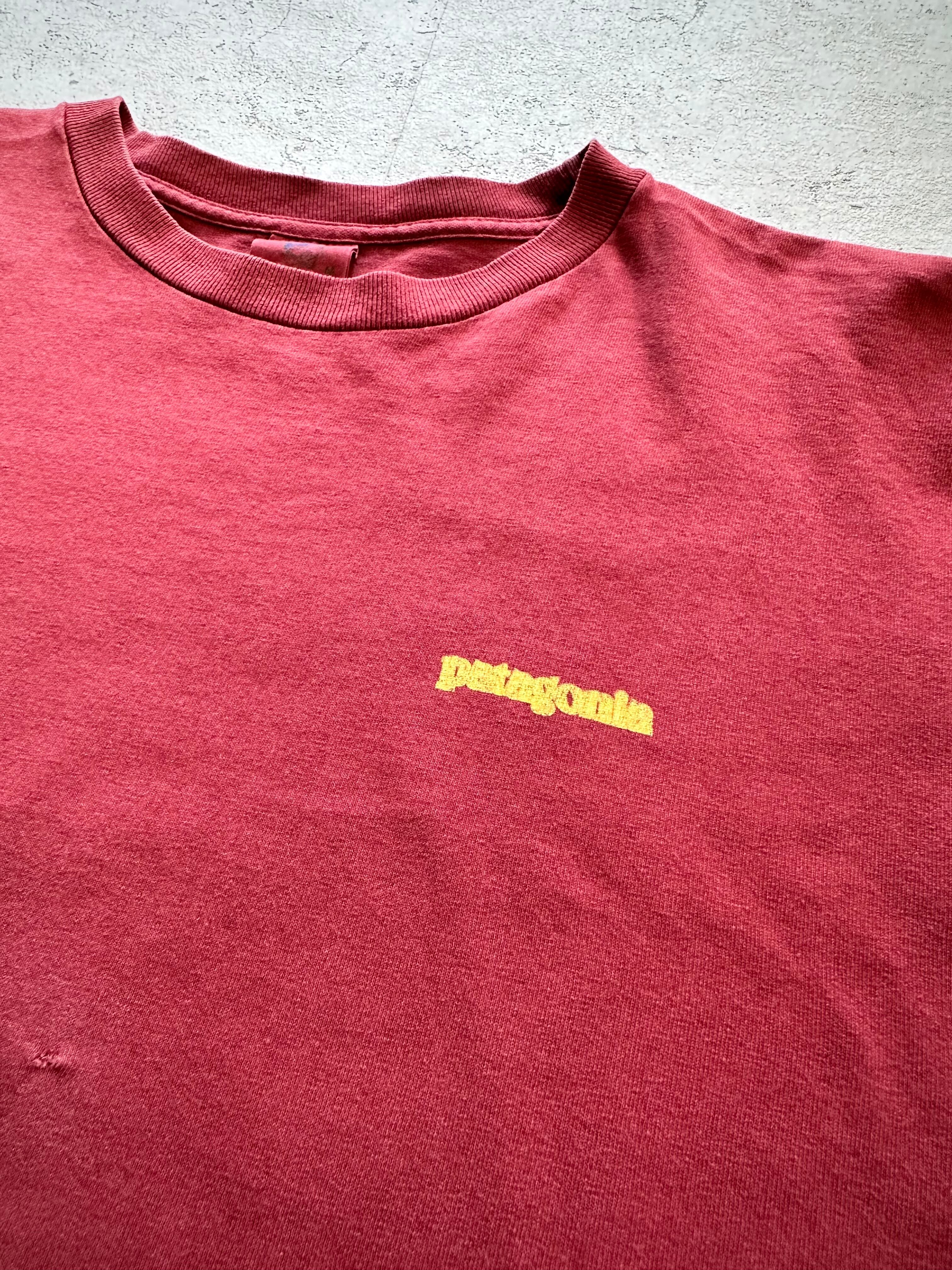 PATAGONIAのTシャツシリーズとしてはお馴染みのBENEFICIAL-T’Sをベースにした少し古いオールドシリーズ、90年代頃には多く展開されていた少しポップに描かれたフィッツロイの風景が特徴的なグッドデザインな1枚です。