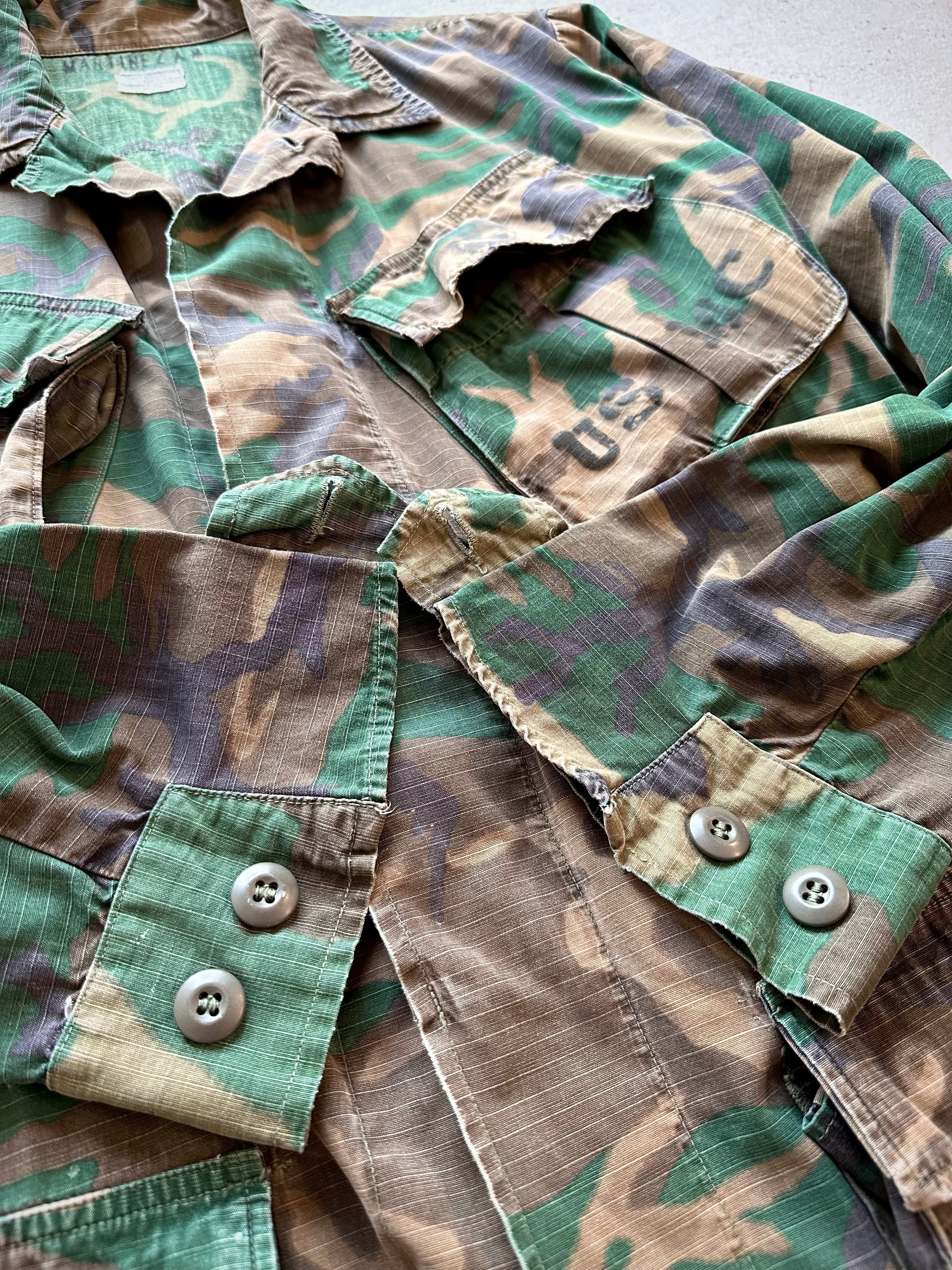 70s “ USMC” ERDL COMBAT TROPICAL BROWN LEAF JUNGLE FATIGUE JACKET OLD VINTAGE 。