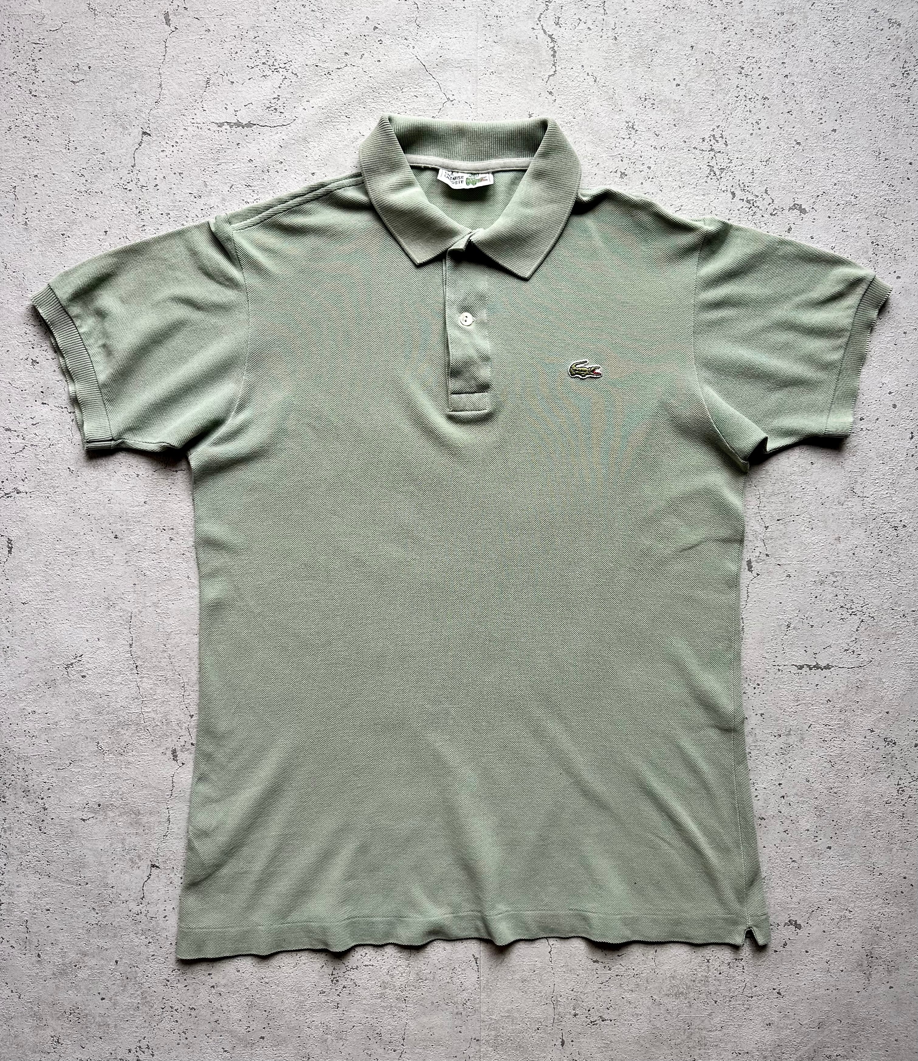 フレンチならではのシルエットには非常に定評がありデニムならリーバイス,シューズならオールデンといった一生物のワードローブにも君臨するフレンチラコステ、渋さのあるライトモスグリーン系のカラーリングも雰囲気良く入手困難が予想される普遍的な1枚だと思いますので、お好き方や探されていた方は是非この機会にいかがでしょうか。