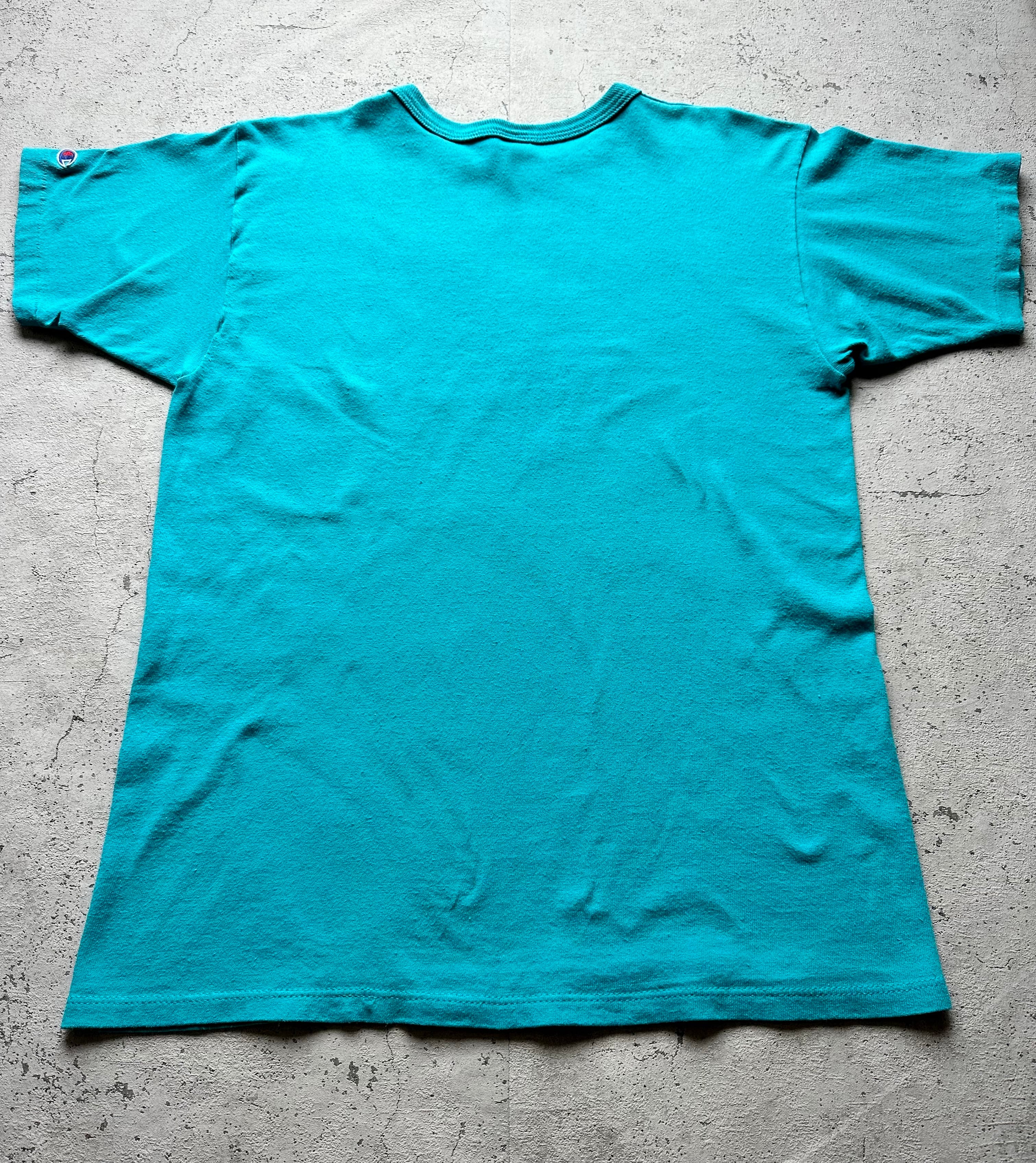 80s USA製 “ CHAMPION ” ALL-COTTON PRINT TEE TURQUOISE OLD VINTAGE アメリカ製 チャンピオン オールコットン プリントTシャツ ターコイズ オールド ビンテージ