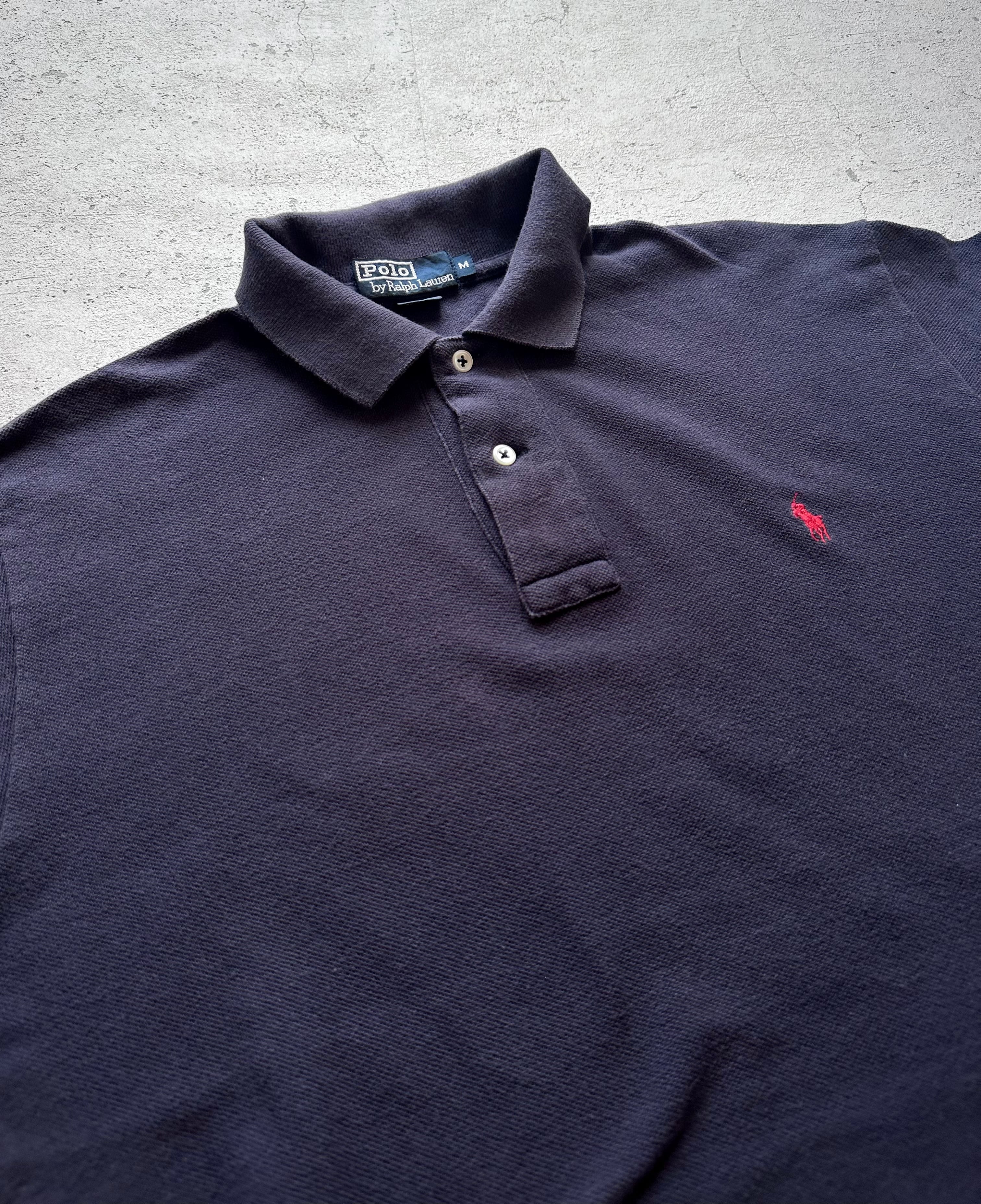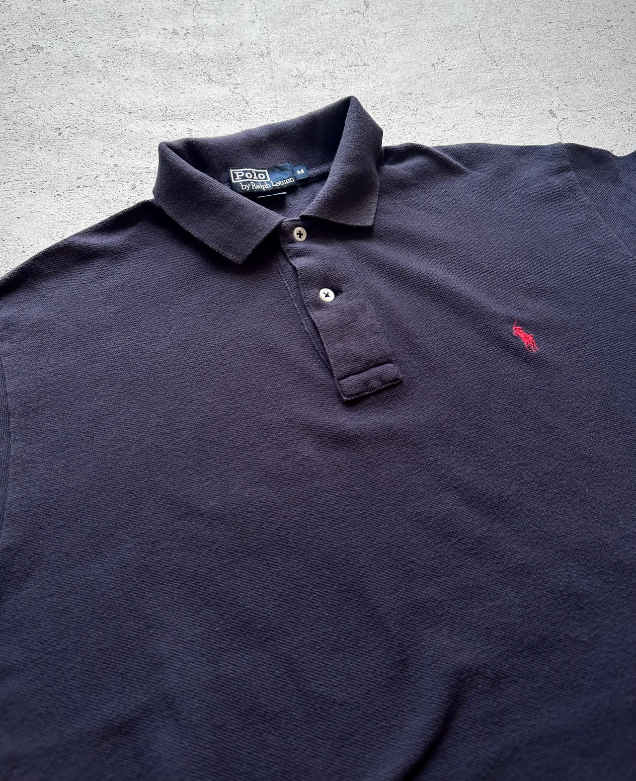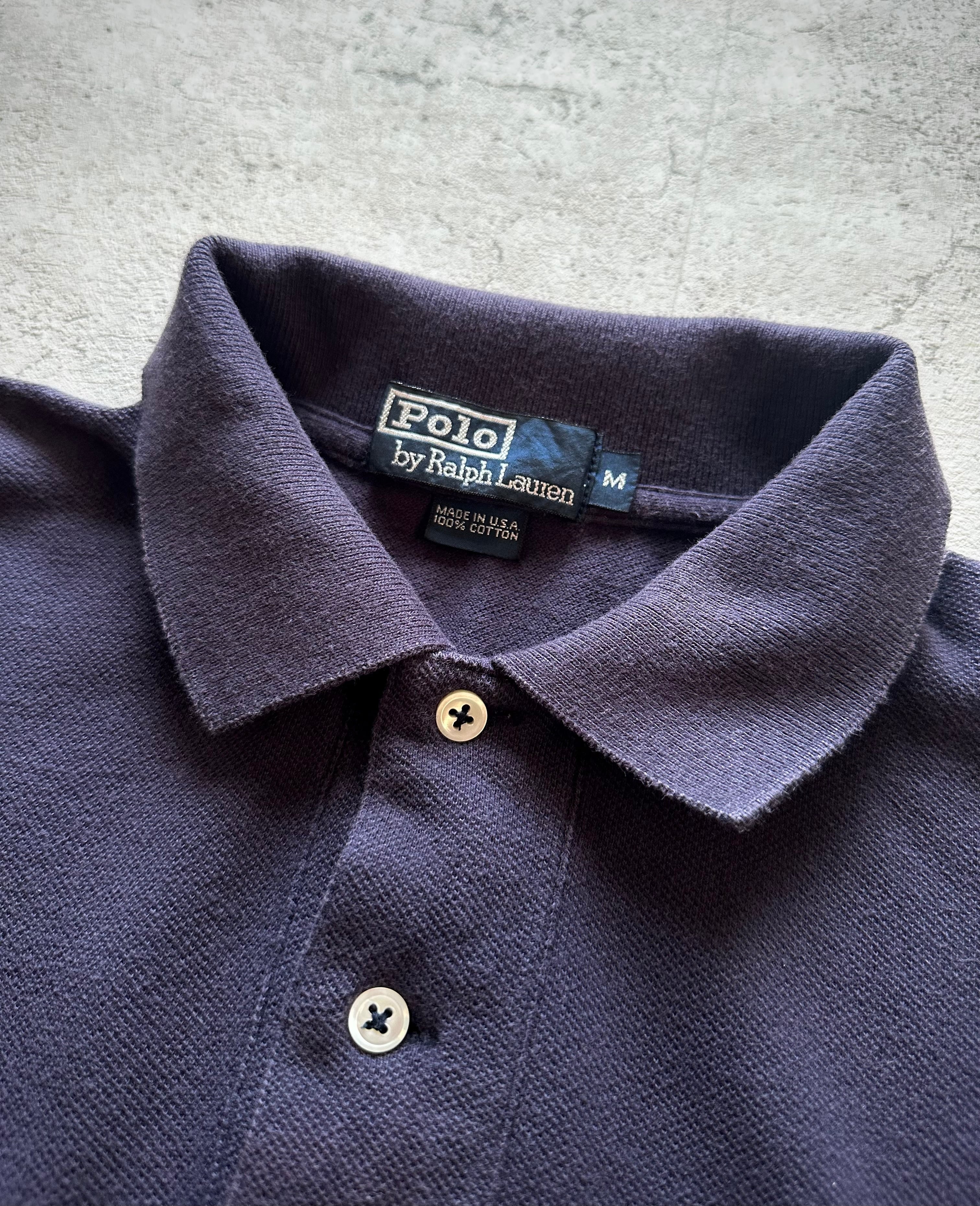 90s〜 MADE IN USA “ POLO RALPH LAUREN ” - ONE POINT POLO SHIRT NAVY OLD VINTAGE 。