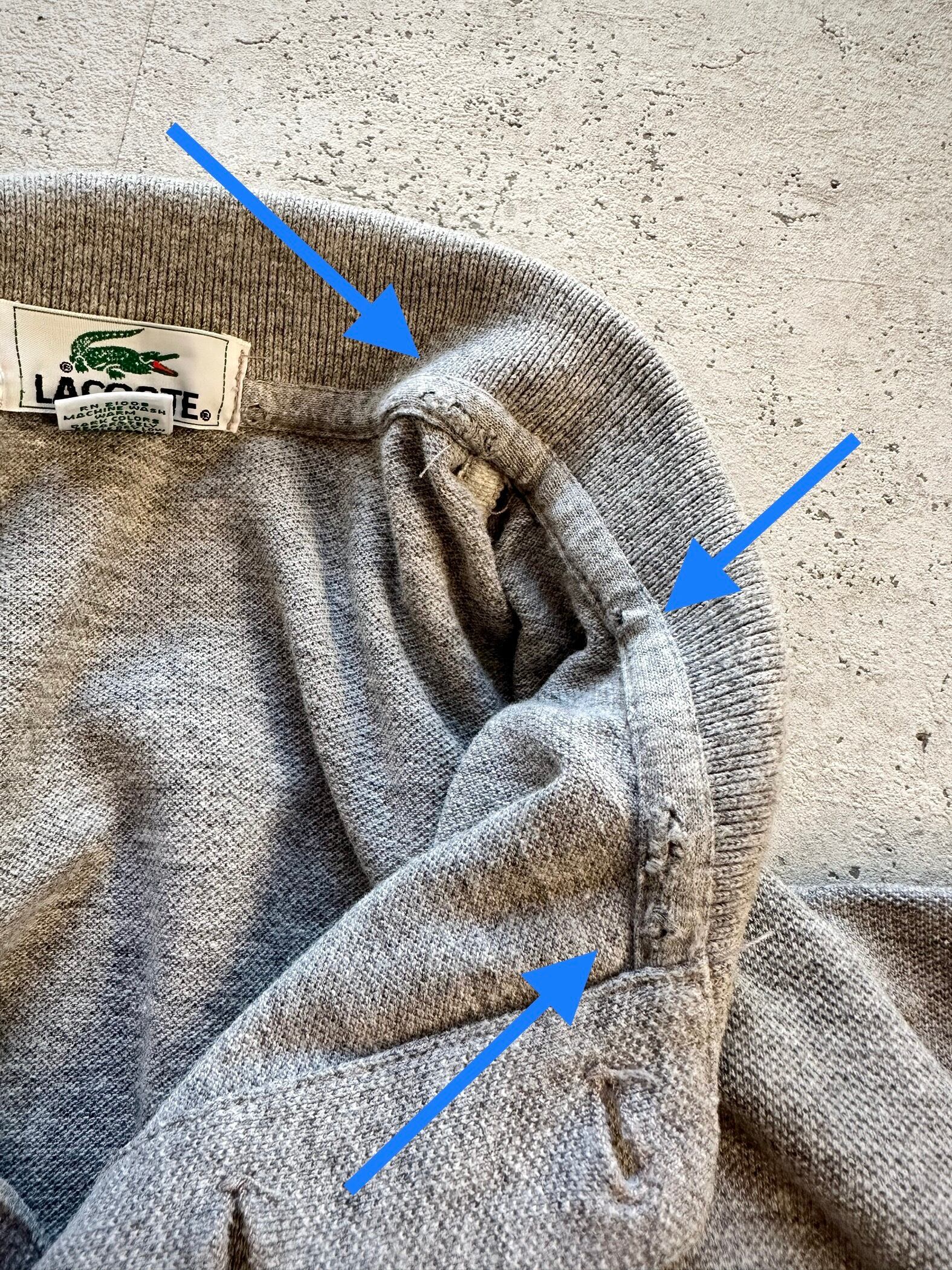USED.ビンテージならではの多少使用感,ネック内側のパイピング部分に生地スレや小穴が少々見受けられますが、その他,着用に支障のある目立つような汚れや大きなダメージは見受けられません。