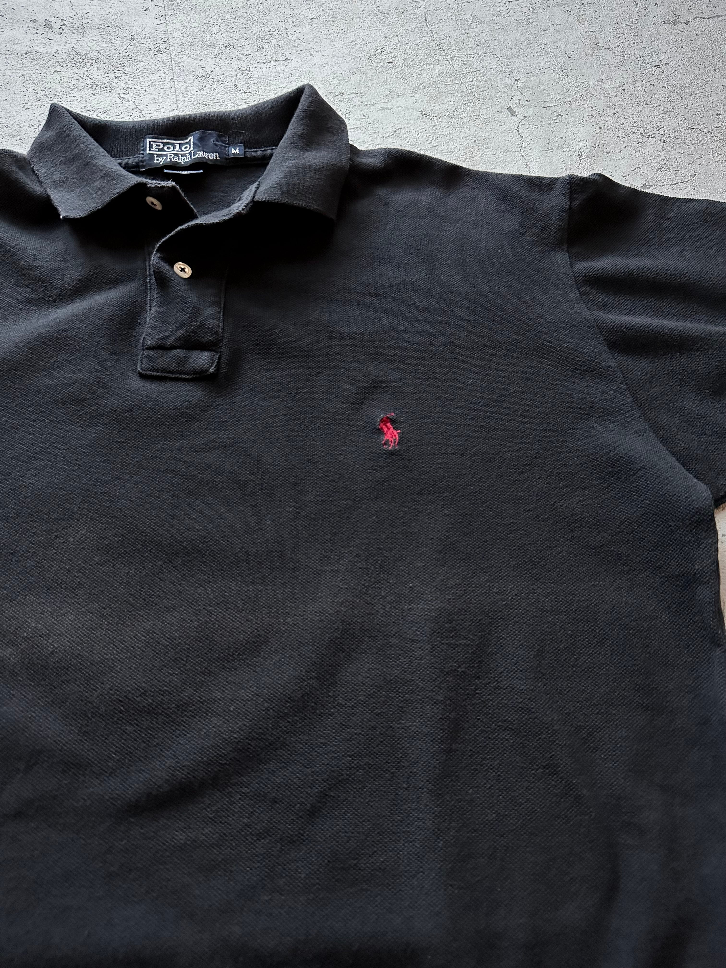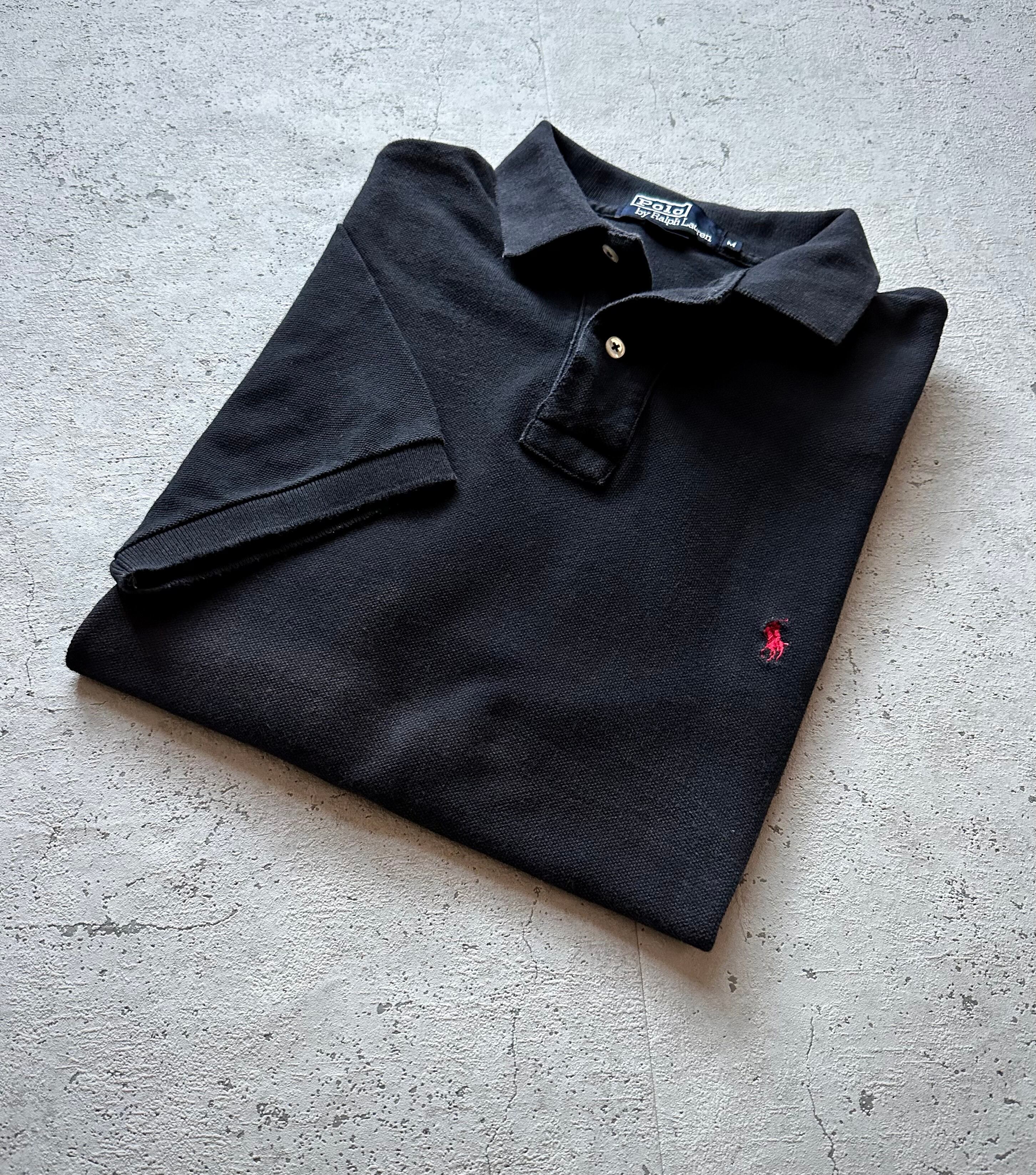90s USA製 POLO RALPH LAUREN - ONE POINT POLO SHIRT BLACK OLD VINTAGE アメリカ製 ラルフローレン ワンポイント ポロシャツ ブラック オールド ビンテージ