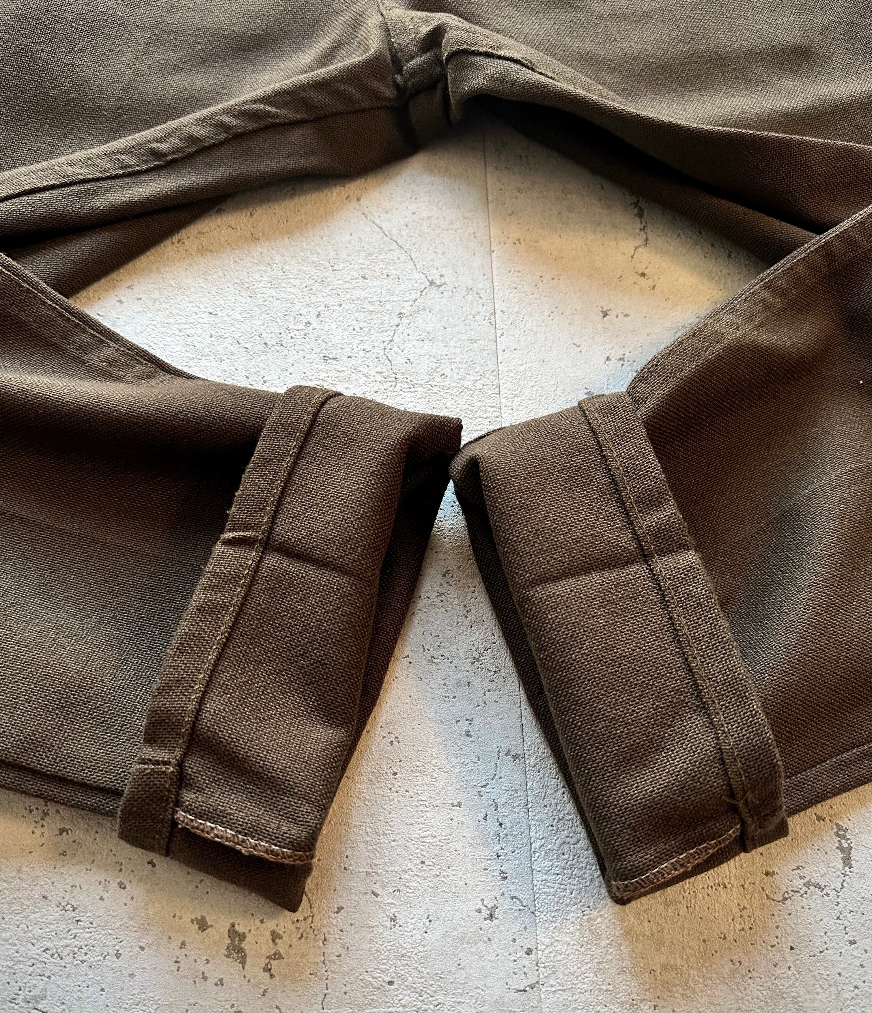 約50年前の物とは思えないほど全くクセの無い綺麗なスリムテーパードシルエット、ドレスパンツの様な印象もありながら速乾性や通気性をも兼ね備えシーズンとしては最適なホップサックがマッチしたVINTAGEらしい佇まいが魅力的なシリーズです。