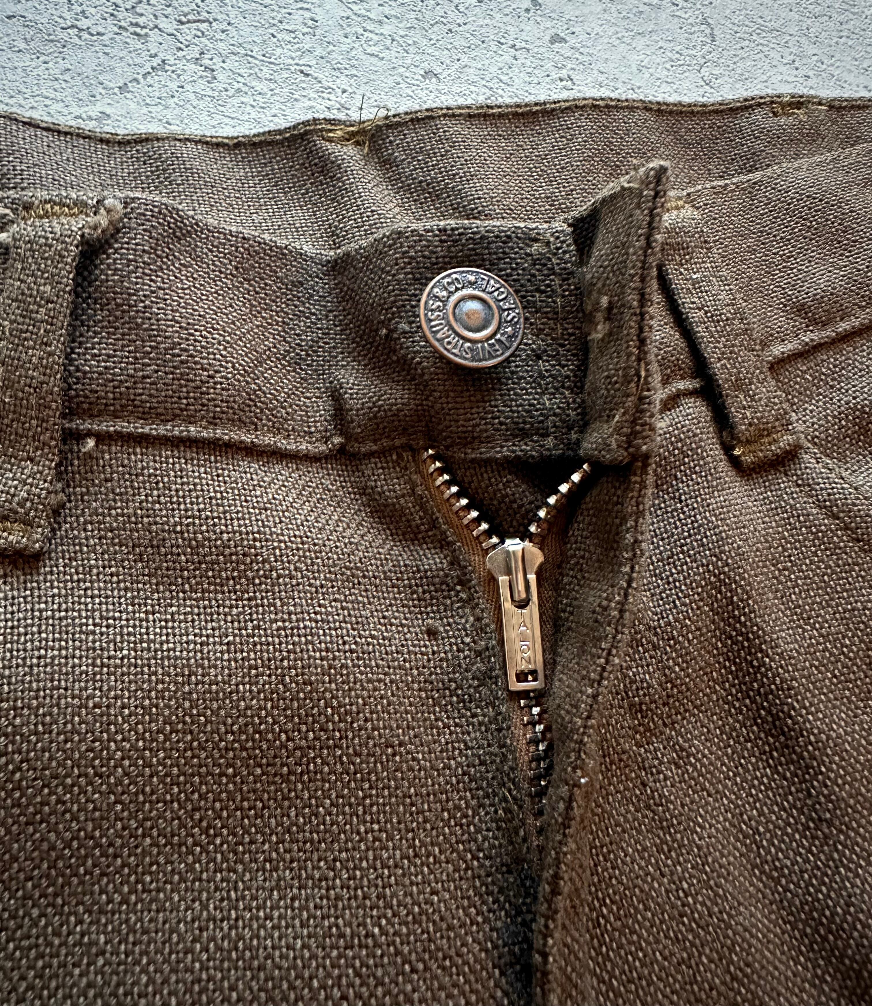 アルミのTALONジッパーにボタン裏564刻印,ステッチ無しのポケットに均等VのBig-E黒タブ付き等々と当時ならではの嬉しいディテール。