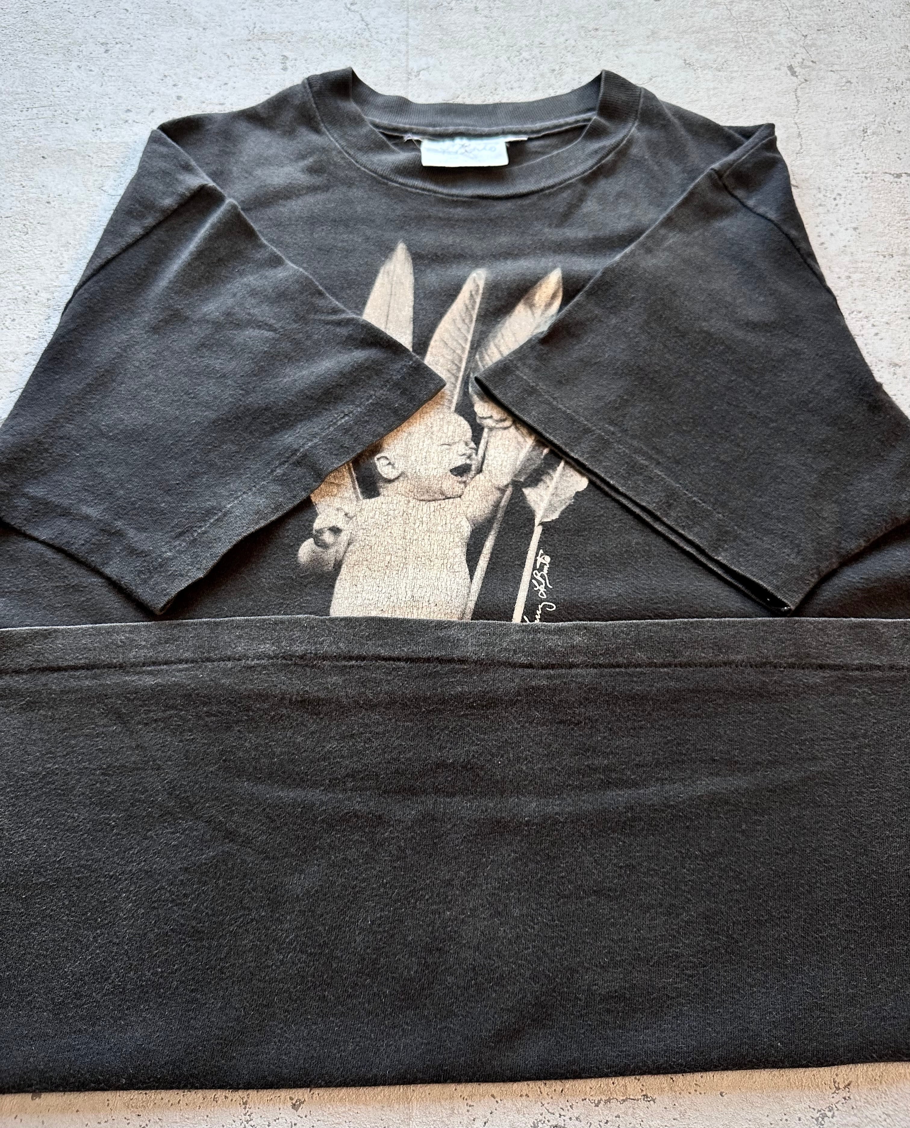 90s〜 MADE IN USA “ LARRY LABONTE ” EARTH WARRIOR PRINT TEE OLD ART VINTAGE 。