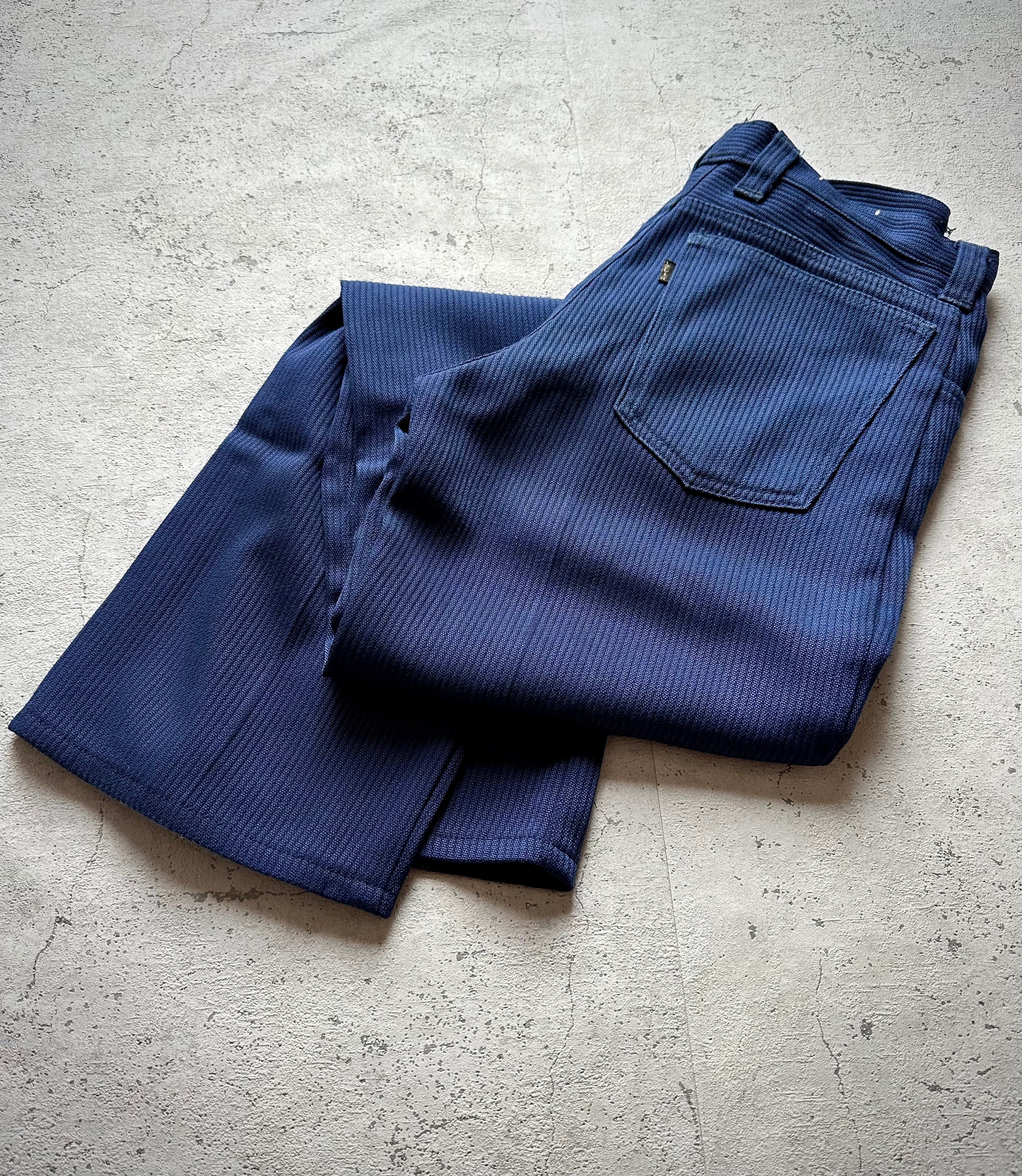 約50年以上前の物とは思えないほど全くクセの無い綺麗なシルエット、恐らくCOTTON/POLYと思われる素材感は柔らかく滑らかな穿き心地に加えて通気性をも兼ね備えた万能なVINTAGE。
