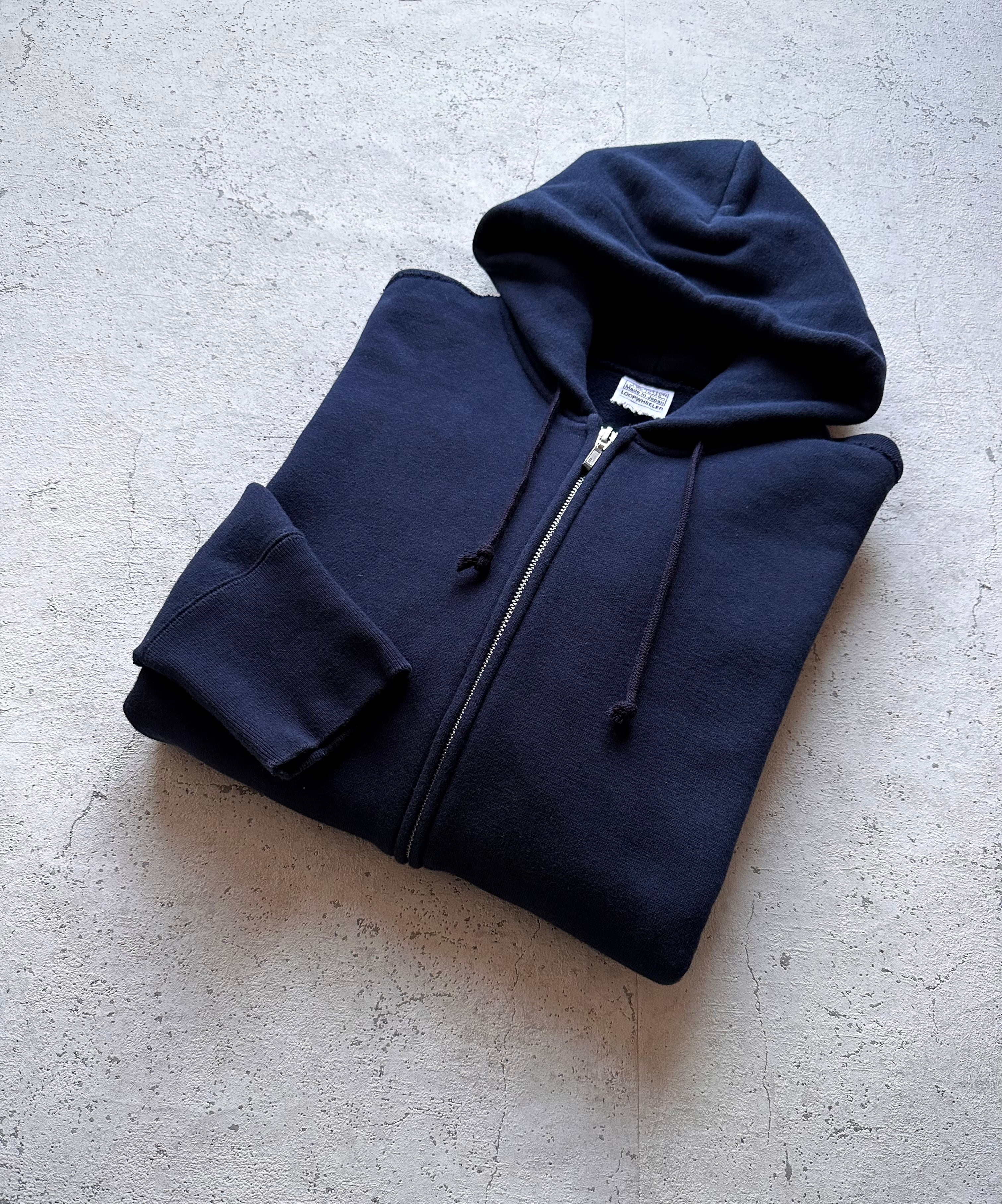 “ LOOPWHEELER ” ZIP-UP SWEAT PARKA NAVY JAPAN MADE ORIGINAL 。