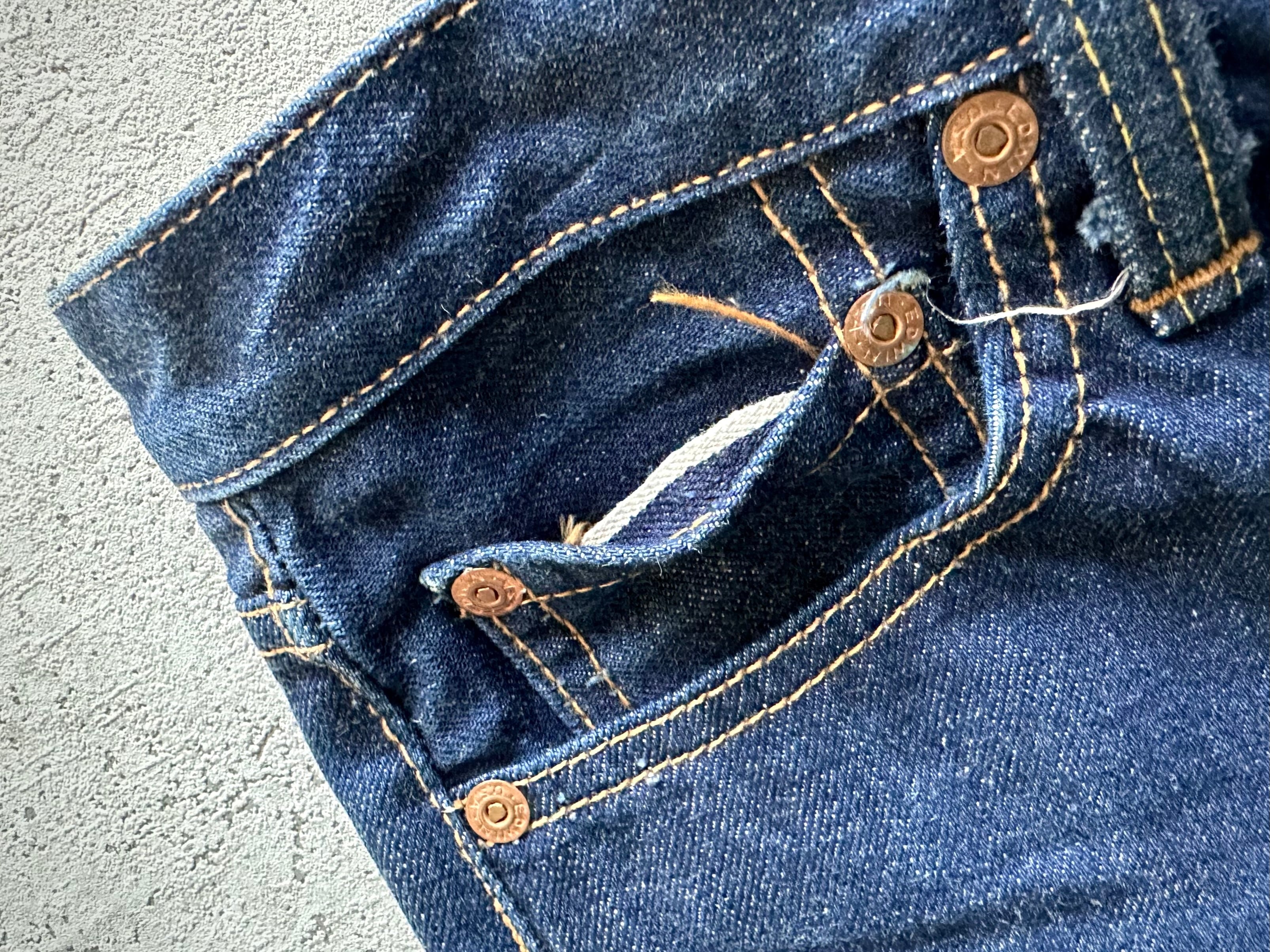 メインのデニム生地はハリコシがあり非常にしっかりとした16オンスのオリジナルデニム生地を採用、初期の特徴でもある珍しい片耳にコインポケット裏の赤耳,角型SCOVILLジップに1stタグ,バックポケットのステッチ&レーヨンタブ等々とVINTAGEならではのディテールが魅力的な希少な当時のオリジナル。