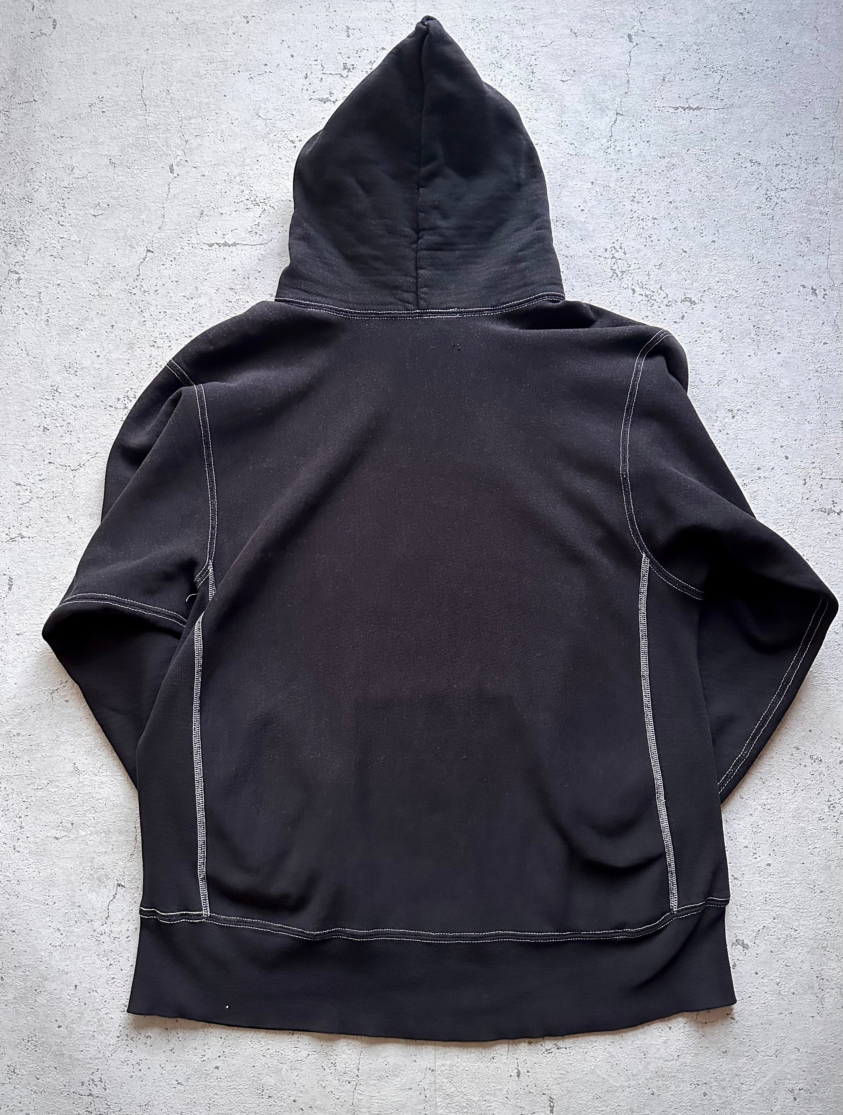 80年代ではお馴染みのプリントタグ期ビンテージオリジナル、“REVERSE WEAVE”としては人気が絶えないブラックの後染めバージョン“ROXBURY”カレッジシリーズ。