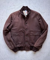 ブランドの代名詞でもあり定番モデルとして君臨する“VALSTARINO”、30sのA-1を彷彿とさせるリブ編みのスタンドカラーやフロントの剥き出しボタン,2WAYのパッチポケットにTバックスタイル,レザーは極めて上質な美しいゴートスウェード仕立てといつの時代もブレない王道ジャケット。