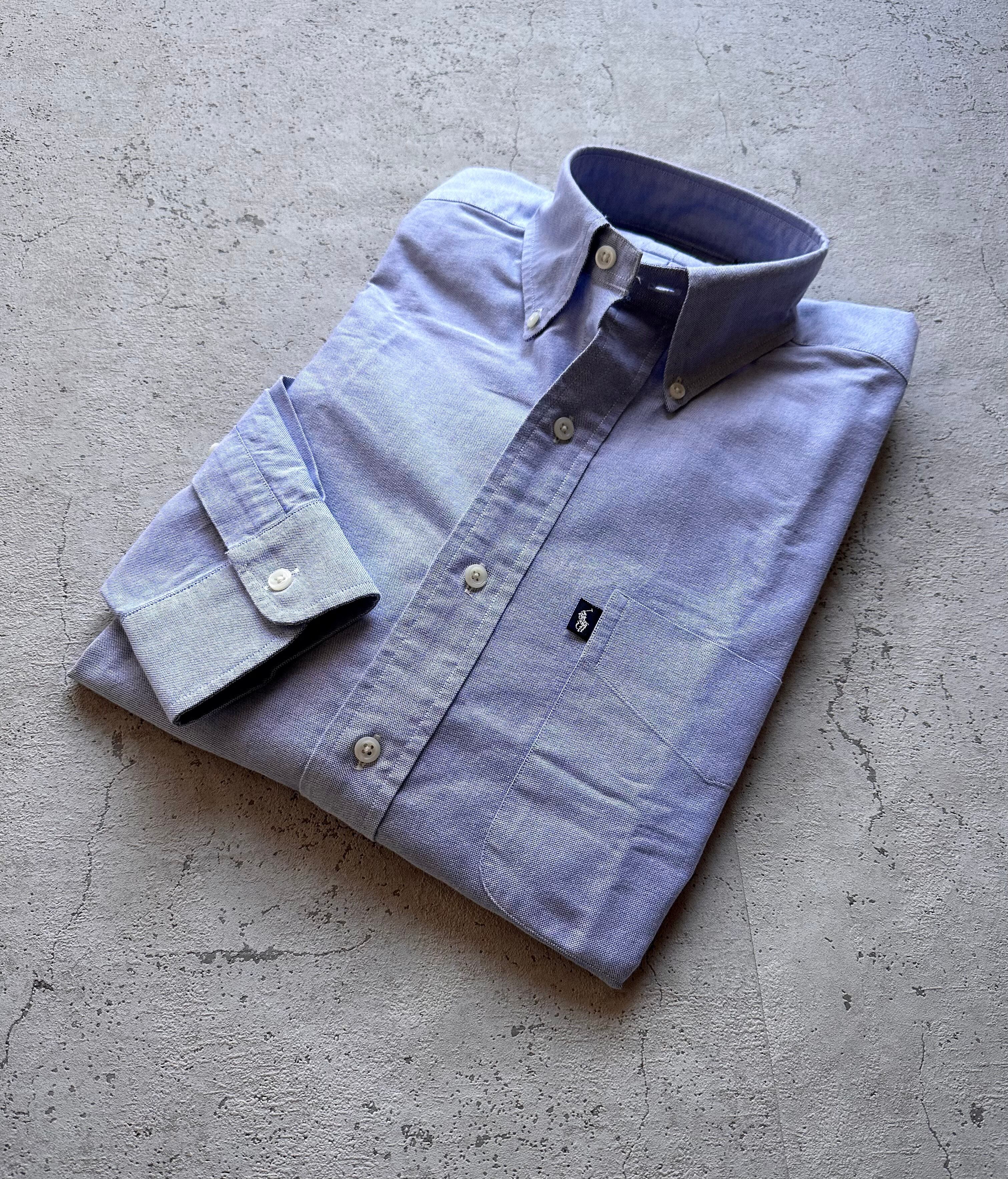 古き良き時代のアメリカンカジュアルやビンテージ,アイビースタイル等ではお馴染みとされているクラシックなオックスフォード・ボタンダウンシャツ、程よくゆとりのあるシルエットに通常のロゴ刺繍ではなくネイビーのポニータブが付いた比較的珍しい1枚です。