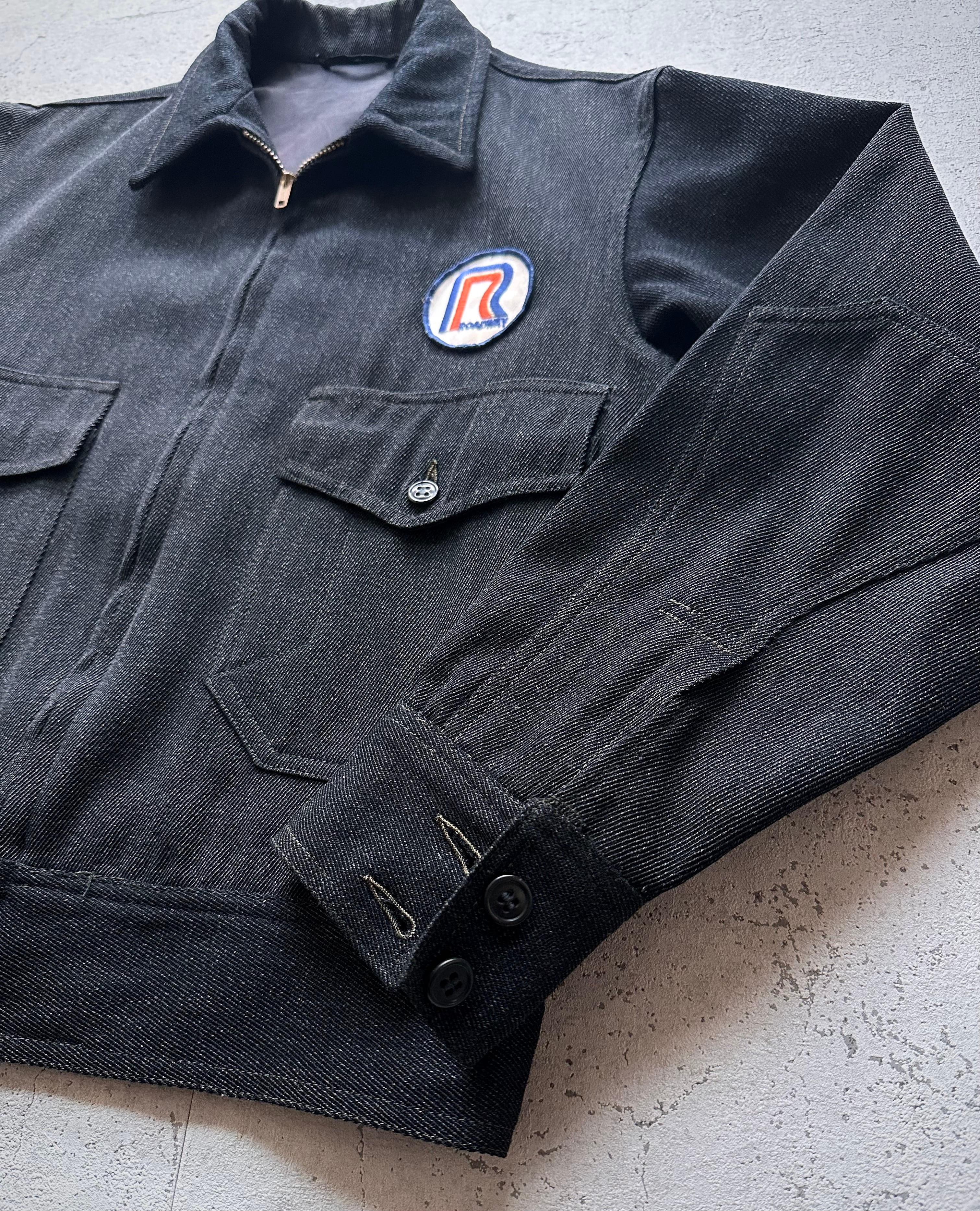 フラップ付きの大きなパッチポケットに少し変わった変則的なエルボーパッチが特徴的な定番のジップアップ.ワークスタイル、袖先やウエストのダブルボタンにサテンの総裏ライニング,襟裏の別生地やキルテッドステッチと丁寧に仕上げられ細部まで拘りを感じられる1枚となっております。