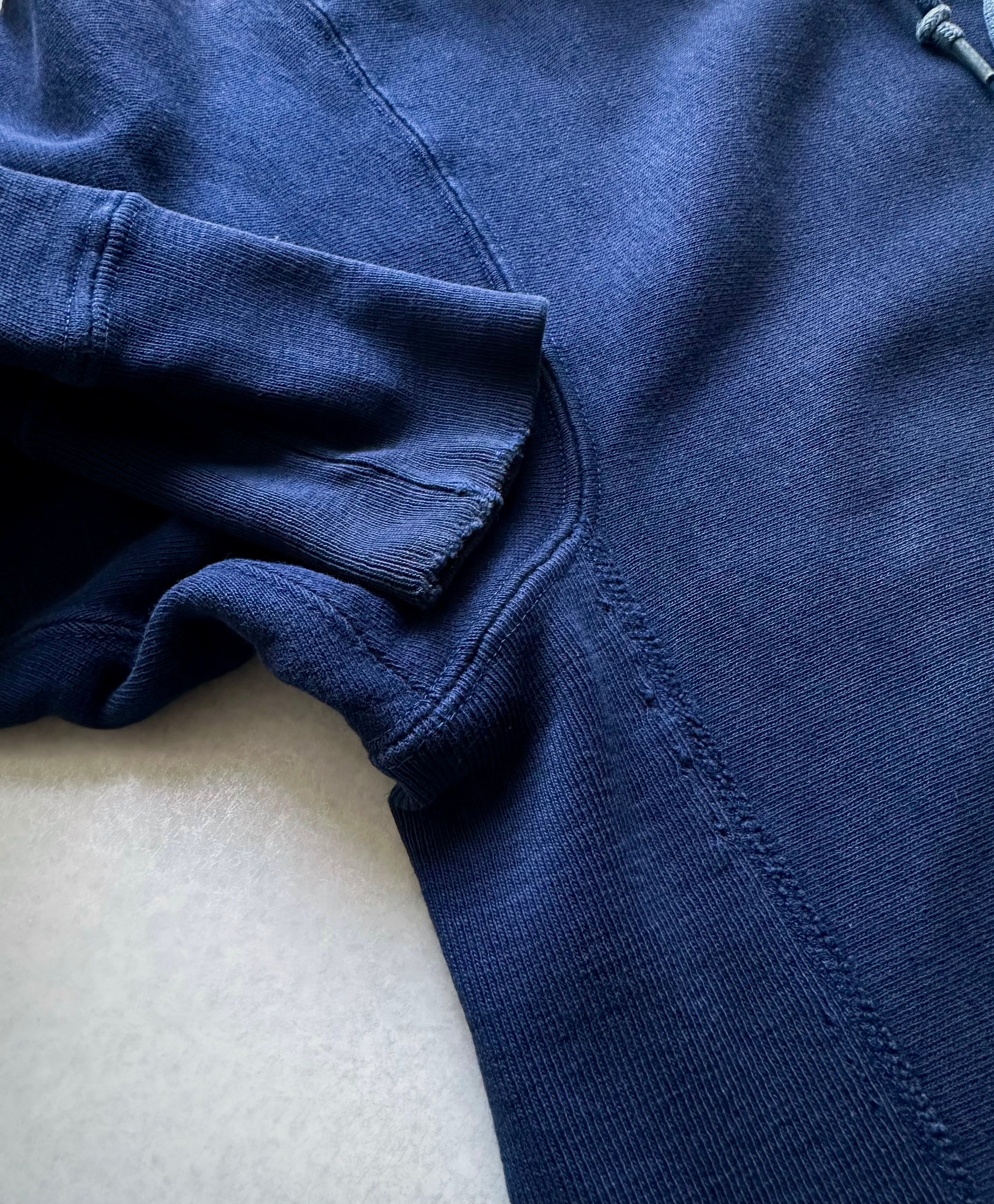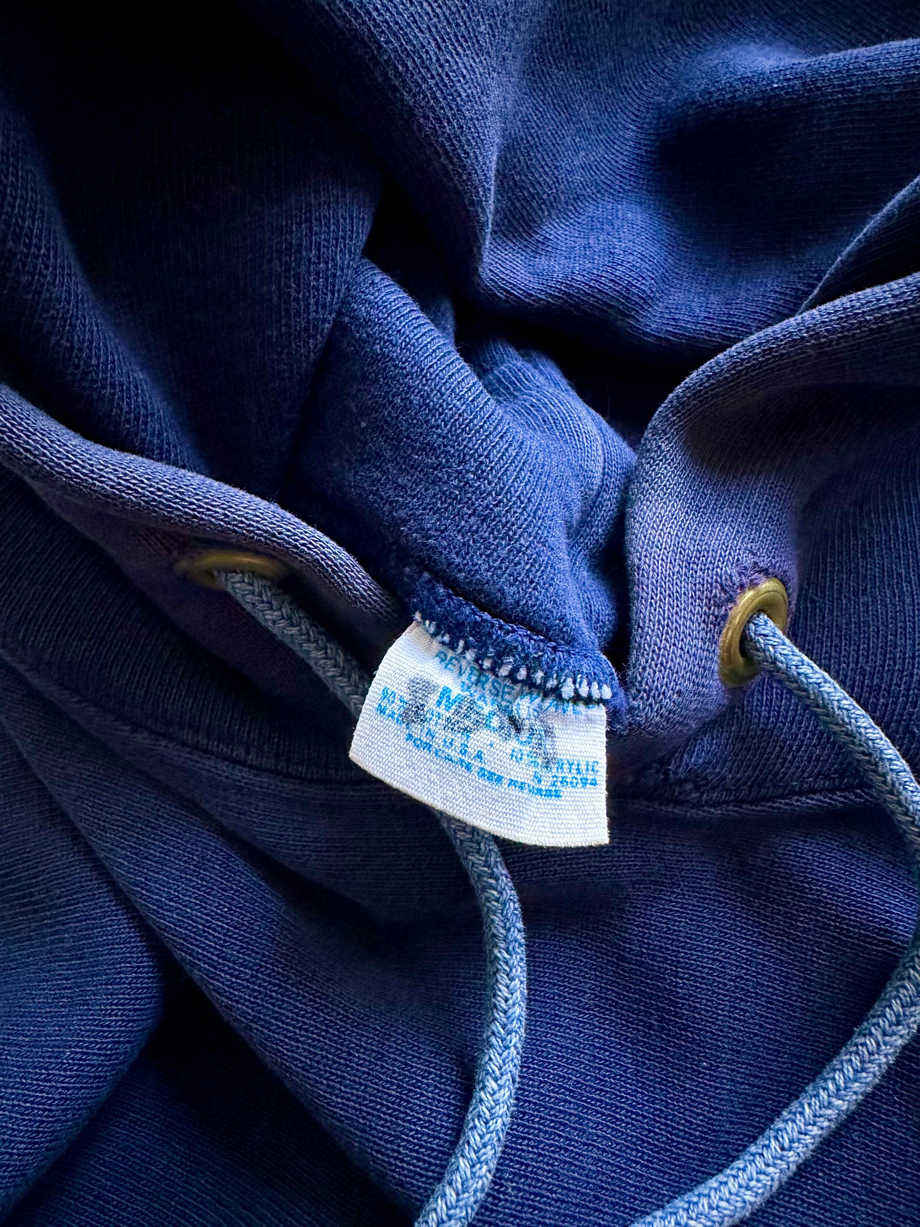 首元にはお馴染みのトリコカラーではなくホワイト×ブルーのみでデザインされた70s,単色タグのビンテージオリジナル、“REVERSE WEAVE”としては非常に高い人気を誇るレアな“USAFA”シリーズ。