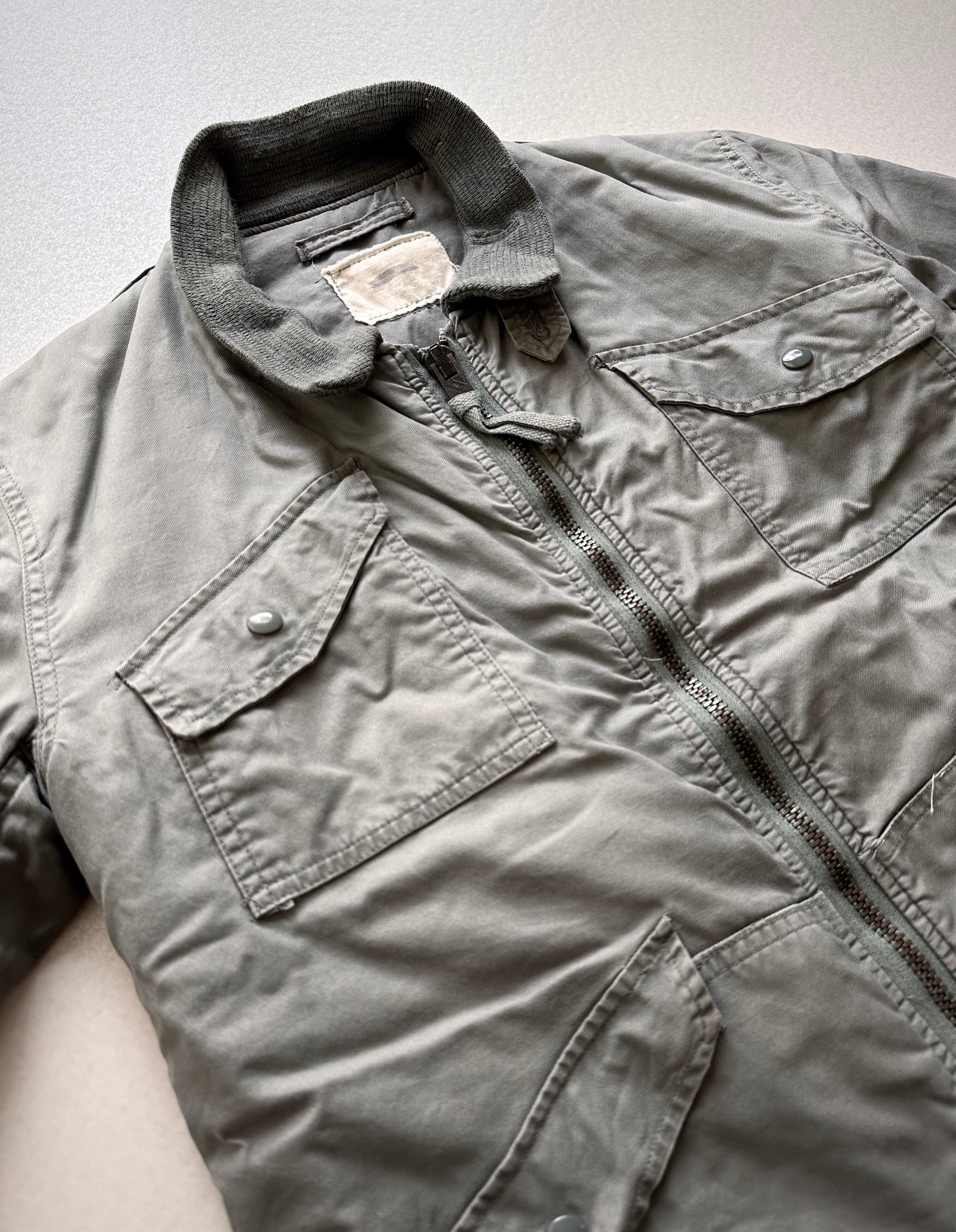 独特なデザインが特徴的なフロントの4ポケットスタイルにリブ編みの立ち襟とスタイリッシュな佇まいにCWUシリーズではお馴染みのNOMEX以前のコットンツイルを纏った非常にルックスの良いグッドなミリタリージャケットです。