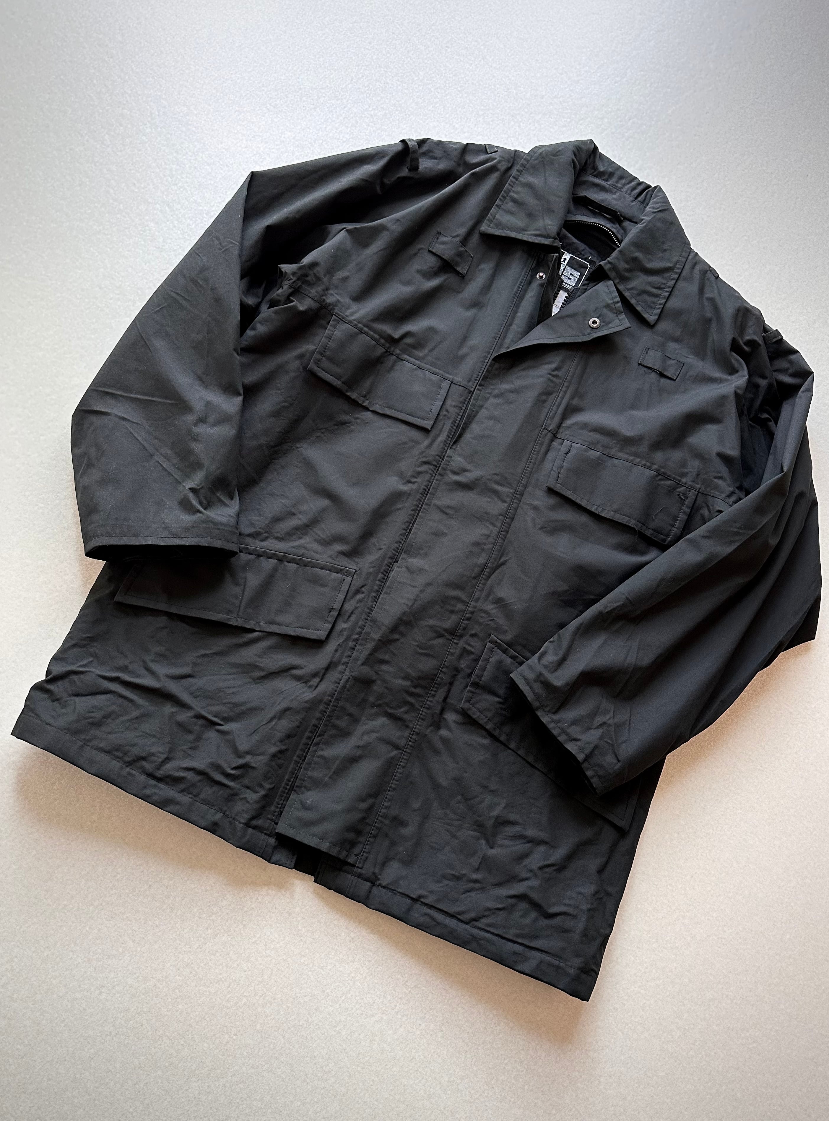 フロントの4ポケットにダブルフラップ&ダブルジップ、ゴアテックスのような防水.撥水性を兼ね備えたCYCLONE FABRICにざっくりとしたシルエットとテクニカルなデザインを踏襲したミリタリーライクな佇まいとなっております。