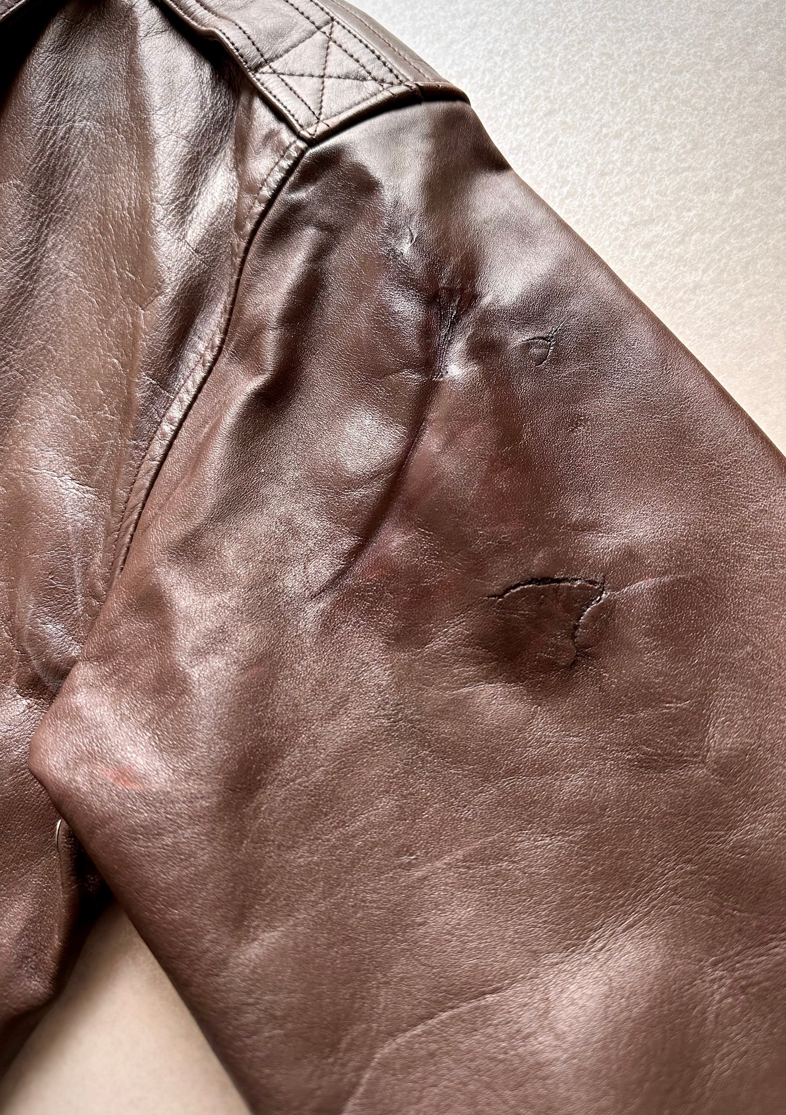 USED.ビンテージならではの使用感,細かいスレ,所々にキズや薄汚れ,左上腕に生地裂けリペアや補色による僅かな変色等が見受けられますが、その他,着用に支障のある目立つような汚れや大きなダメージは見受けられません。