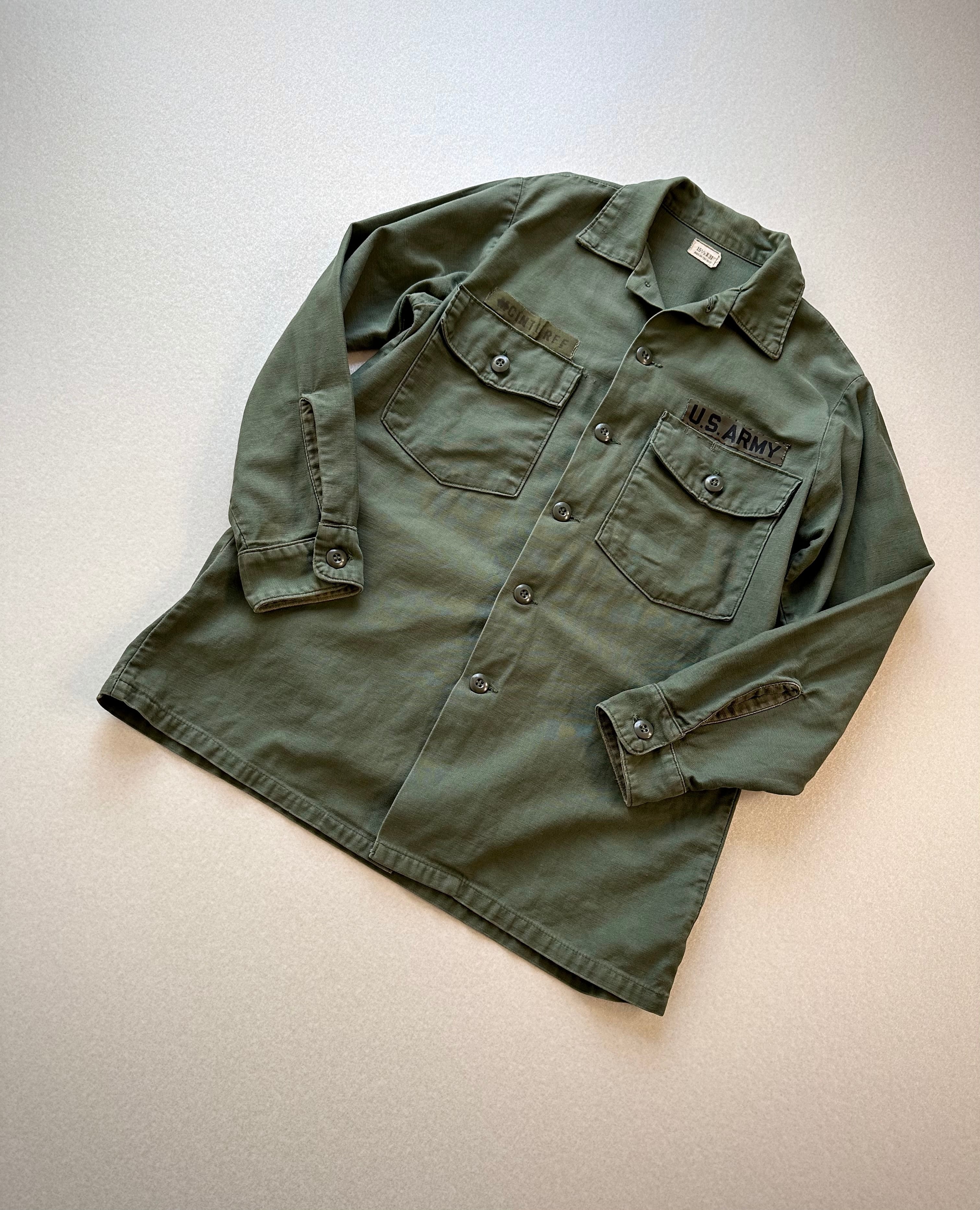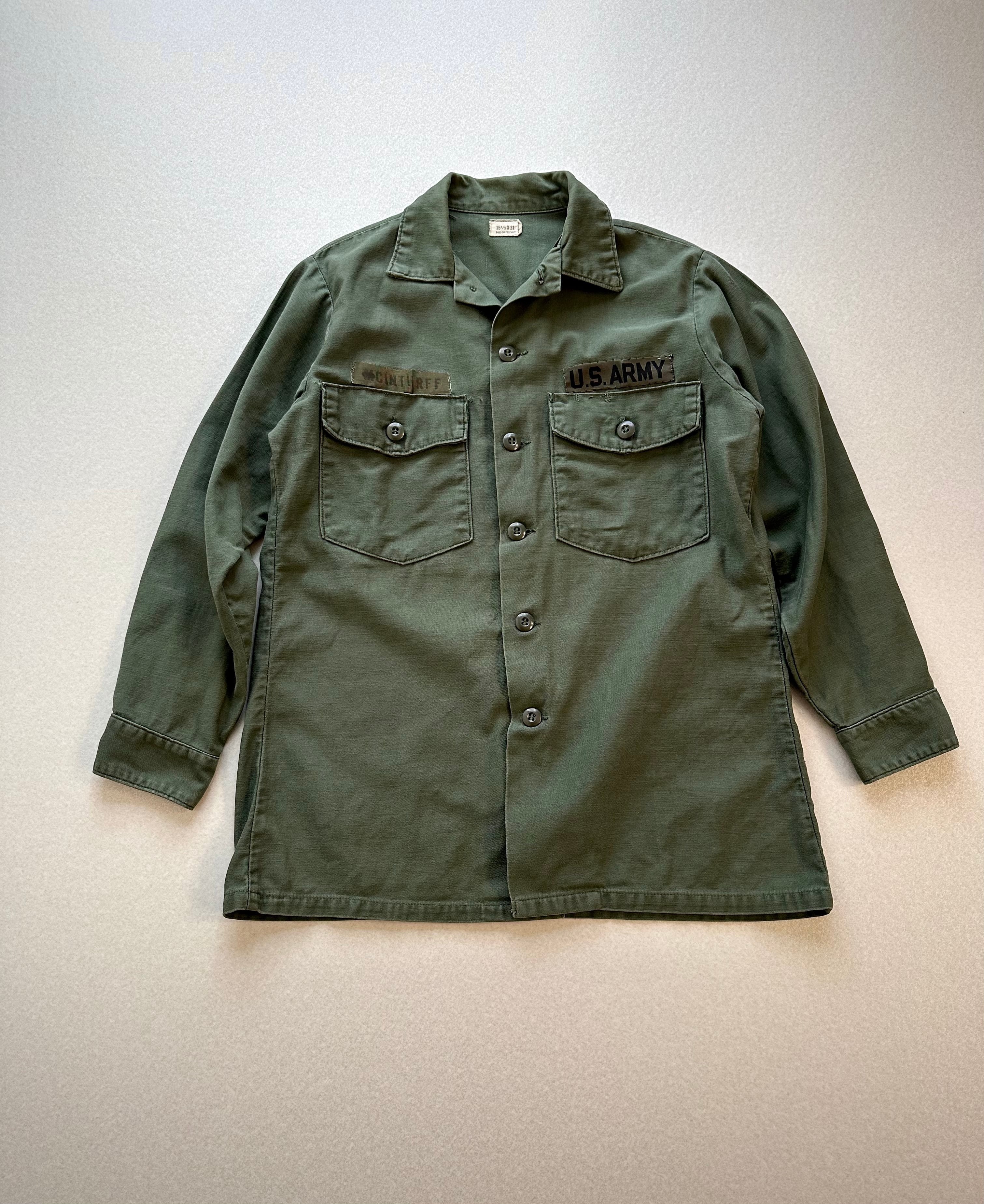 70s “ US.ARMY ” OG-107 COTTON SATEEN UTILITY SHIRT OLD VINTAGE 。