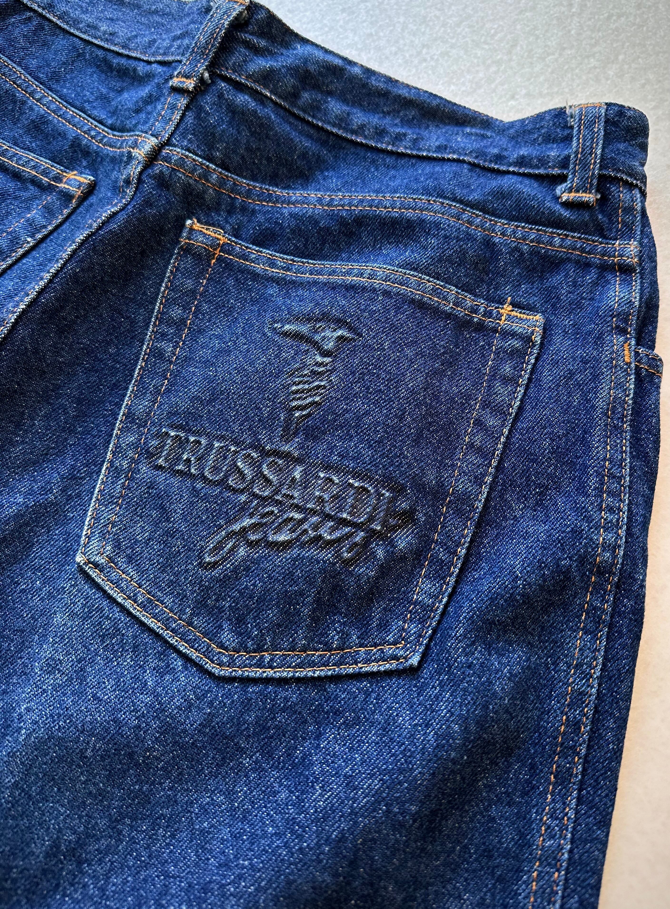 80s-90s MADE IN ITALY “ TRUSSARDI JEANS ” 5PKT INDIGO DENIM OLD VINTAGE 。