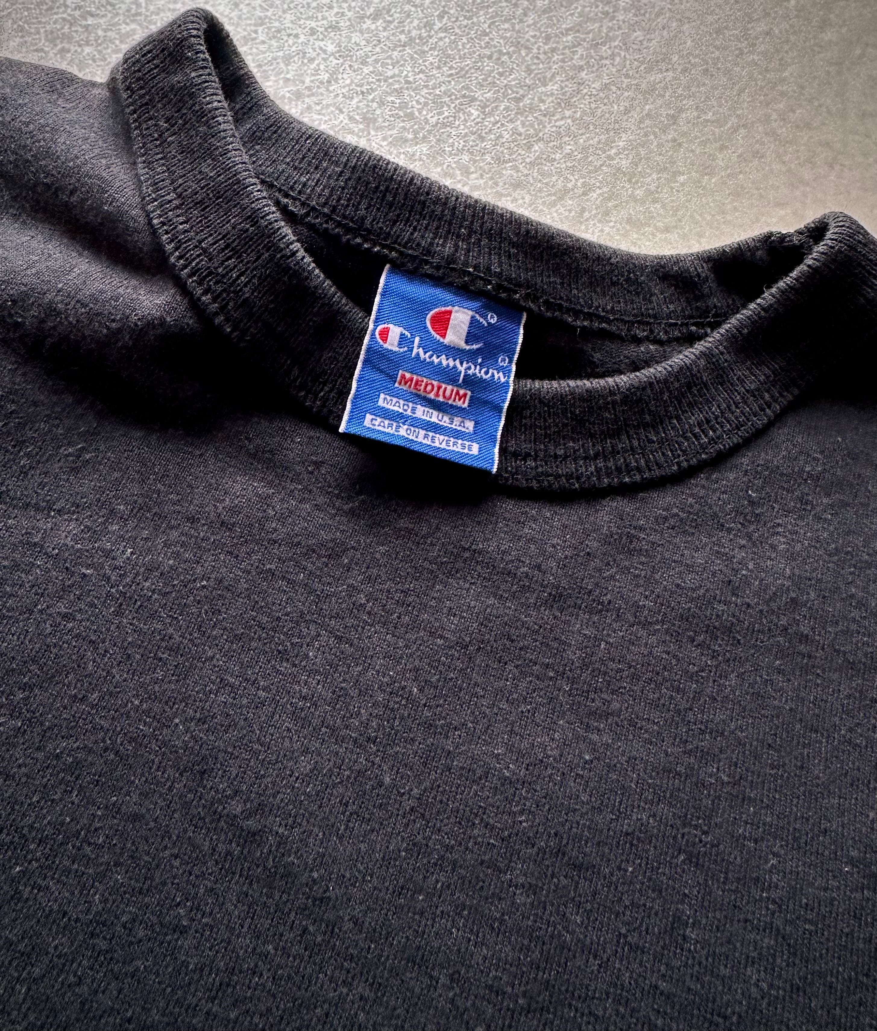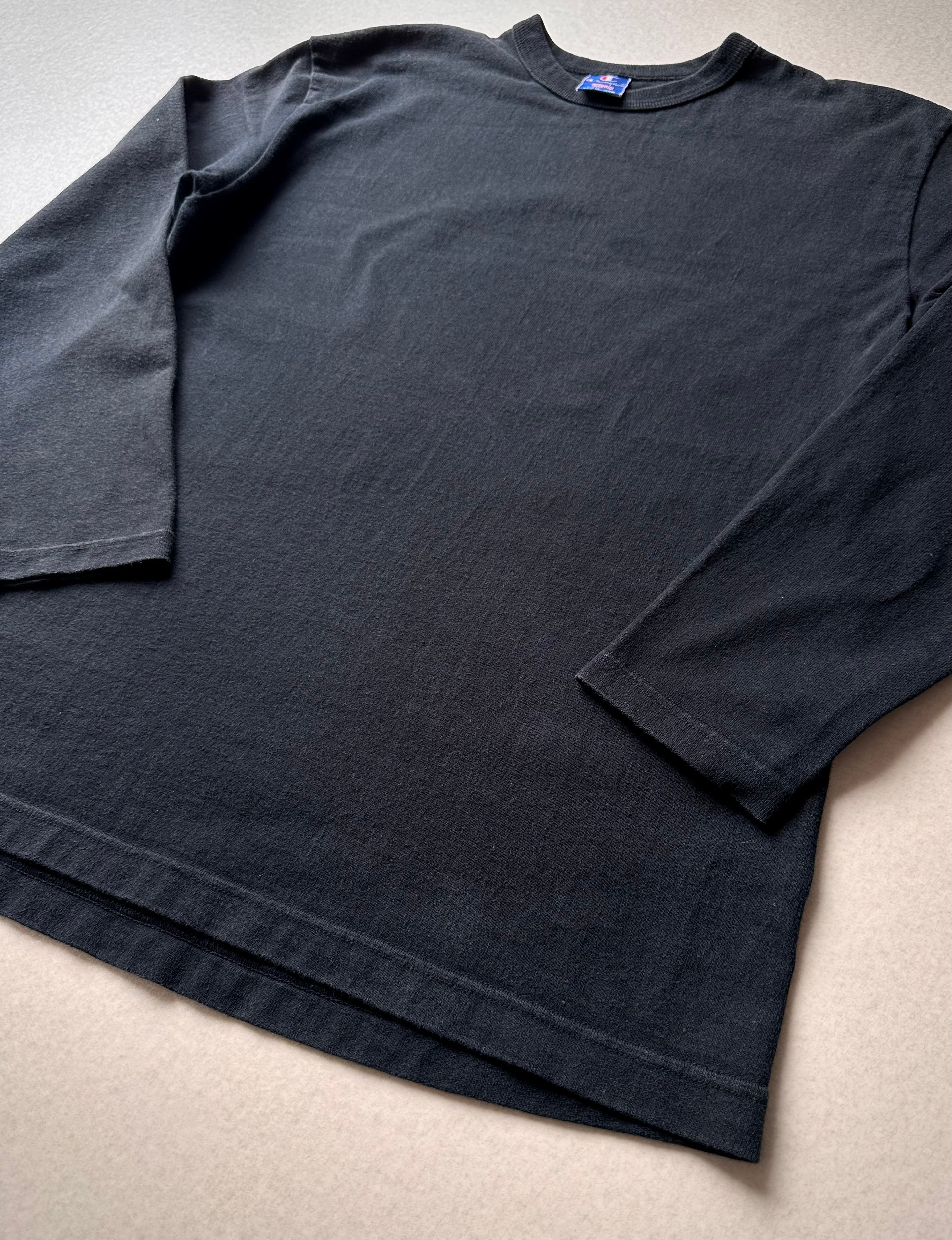 90s MADE IN USA “ CHAMPION ” L/S T-SHIRT BLACK SOLID OLD VINTAGE 。