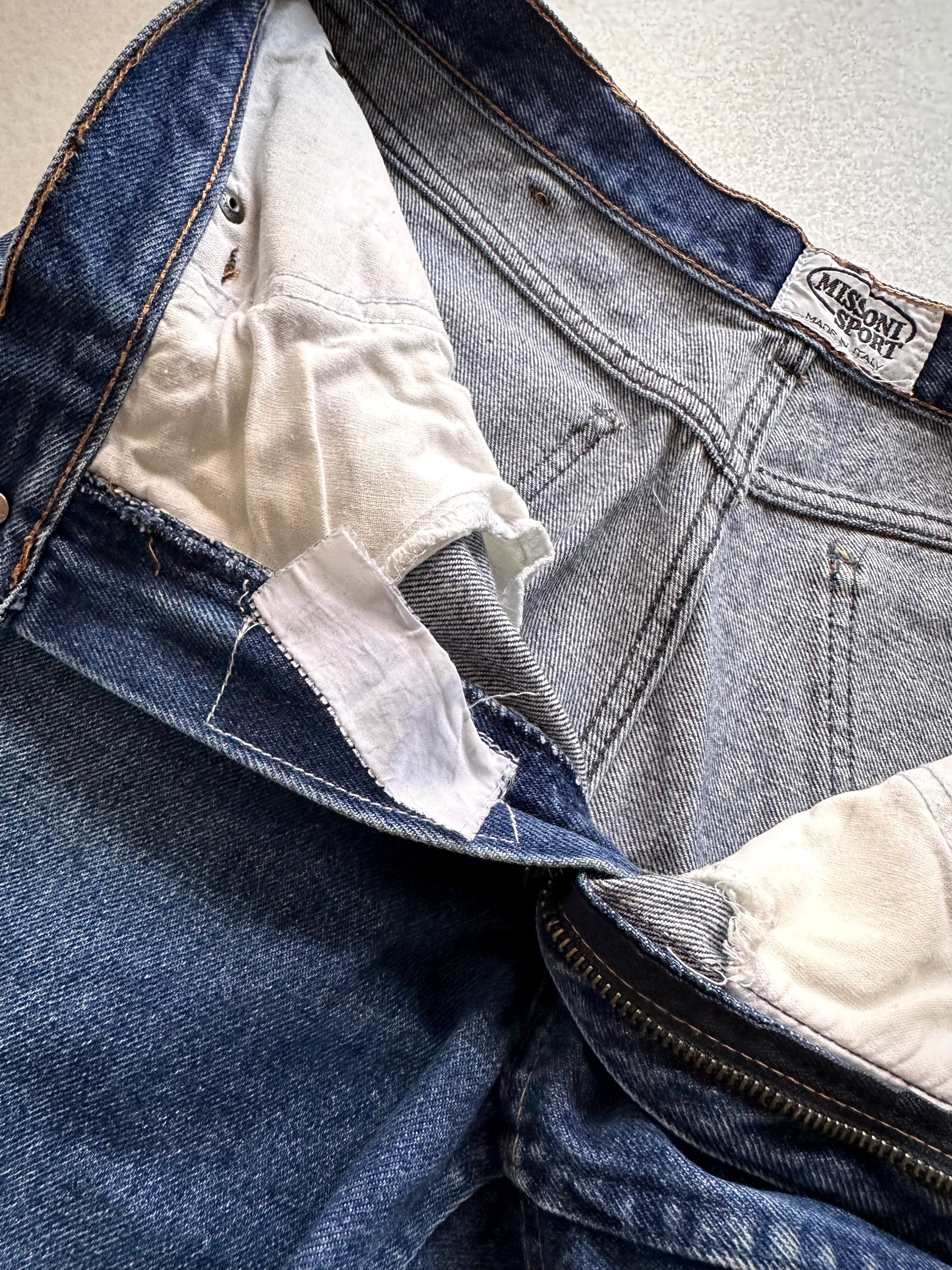 80s〜 MADE IN ITALY “ MISSONI SPORT ” INDIGO TAPERED DENIM OLD VINTAGE 。