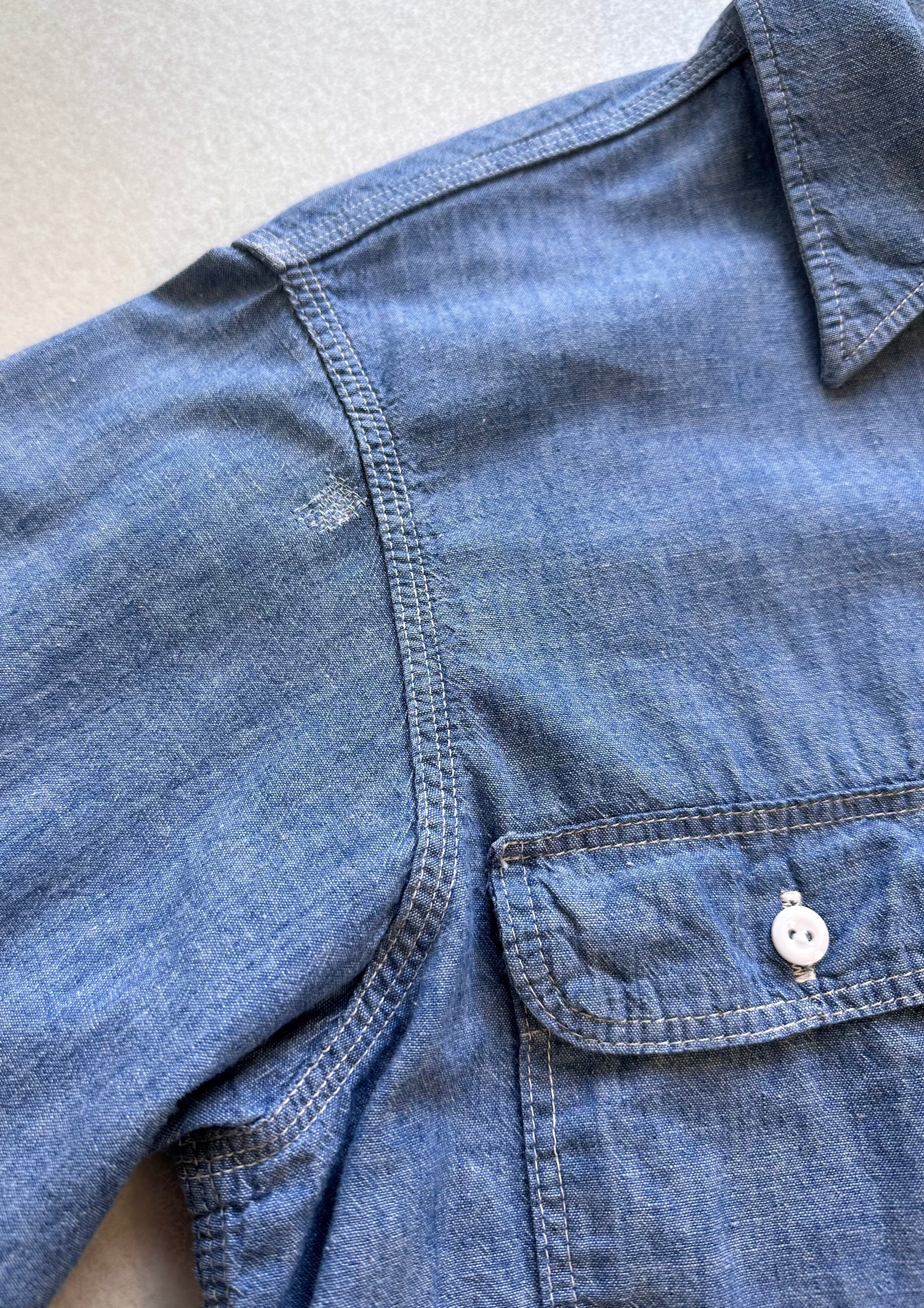 60年代の名残も感じられる雰囲気の良いオールコットンシャンブレー、小さなダメージはありますが年代を考慮しても比較的綺麗なコンディションだと思いますので、お好きな方や探されていた方は是非この機会にいかがでしょうか。