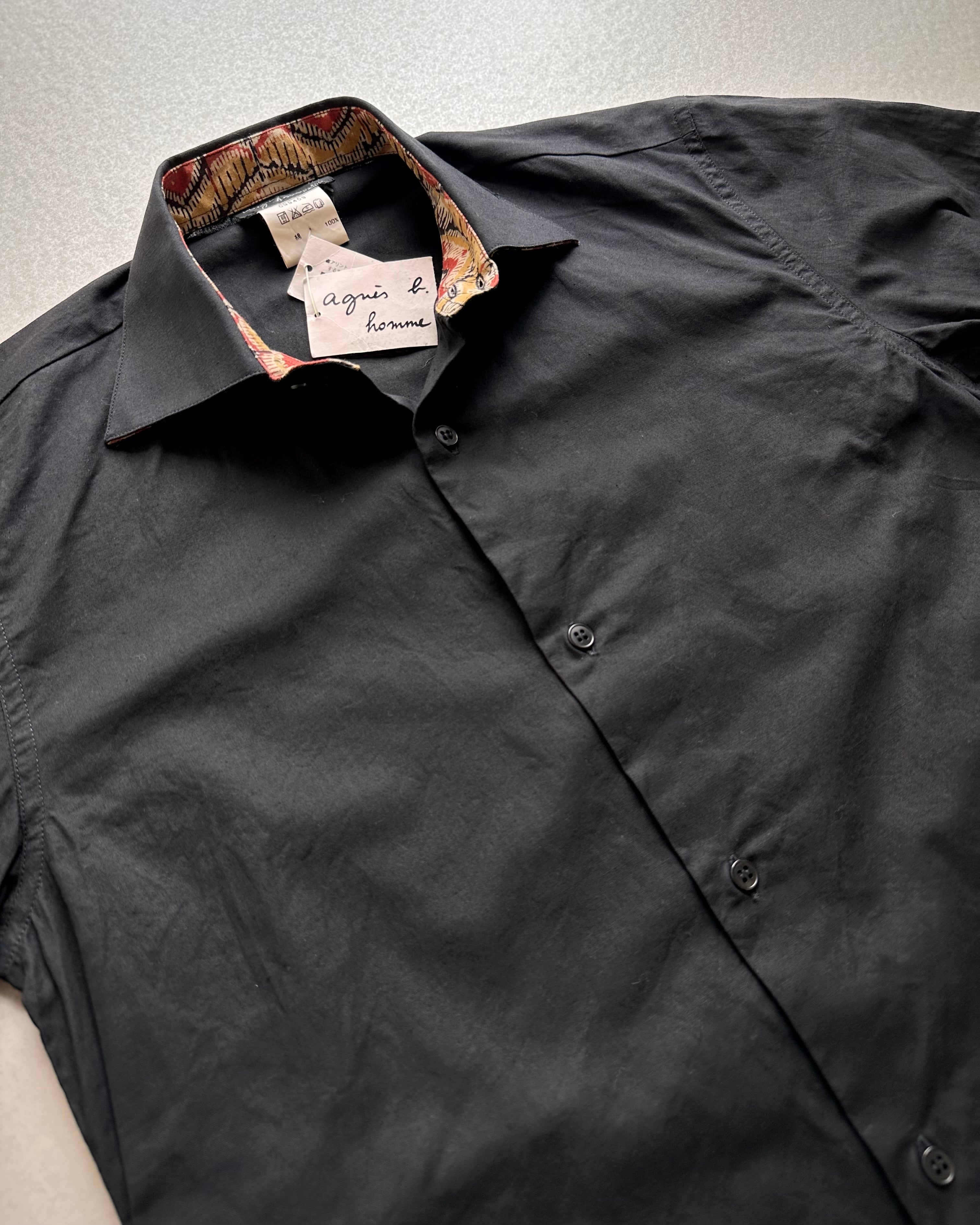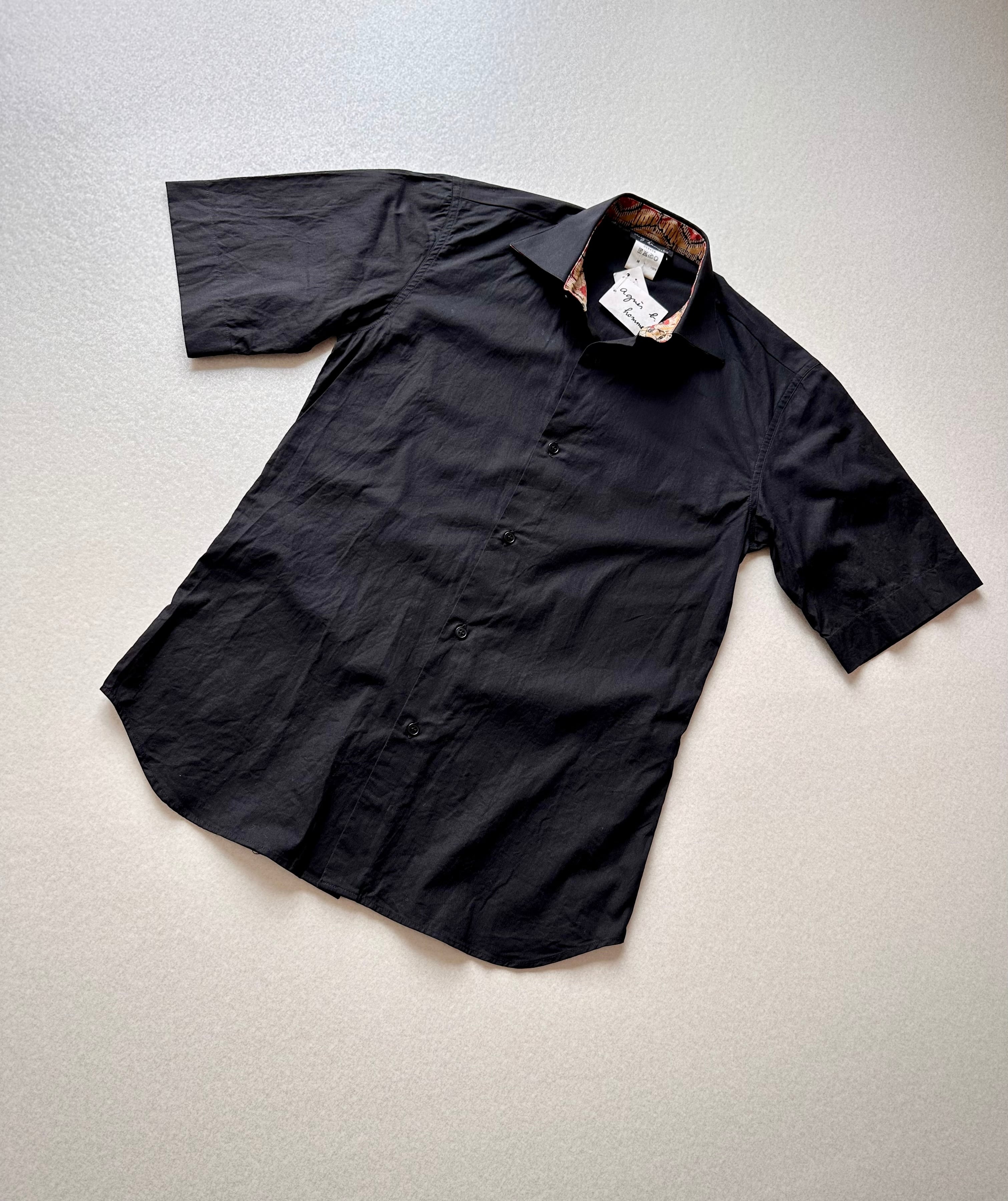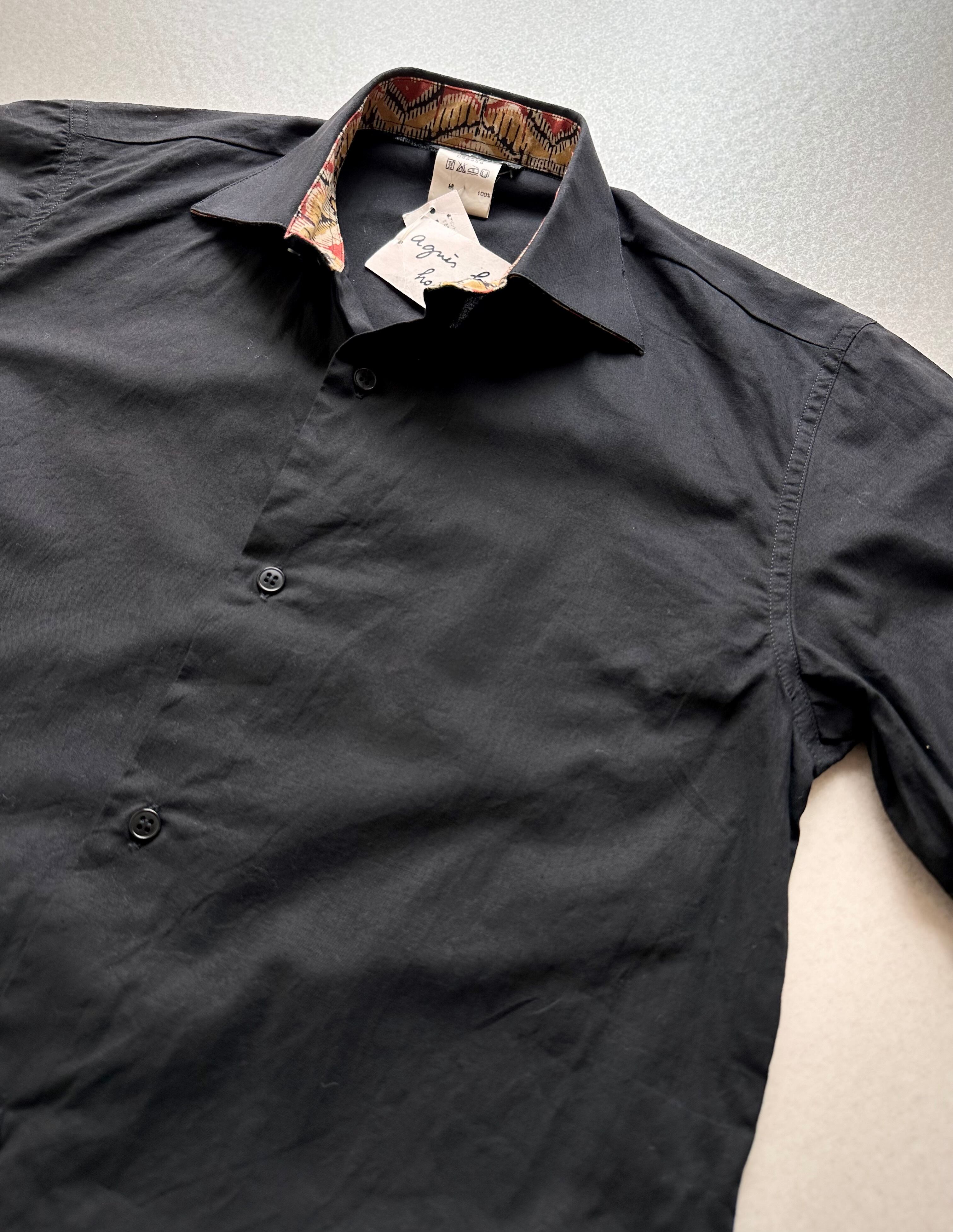 DEAD STOCK MADE IN FRANCE “ Agne’s b ” S/S ALL COTTON BLACK SOLID SHIRT OLD VINTAGE 。