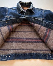 お馴染みの横長紙パッチに不均等Vの赤タブ、ボタン裏は524刻印にブランケットタイプのライナーが付きVINTAGEならではのディティールも魅力的な雰囲気の良いデニムジャケット。
