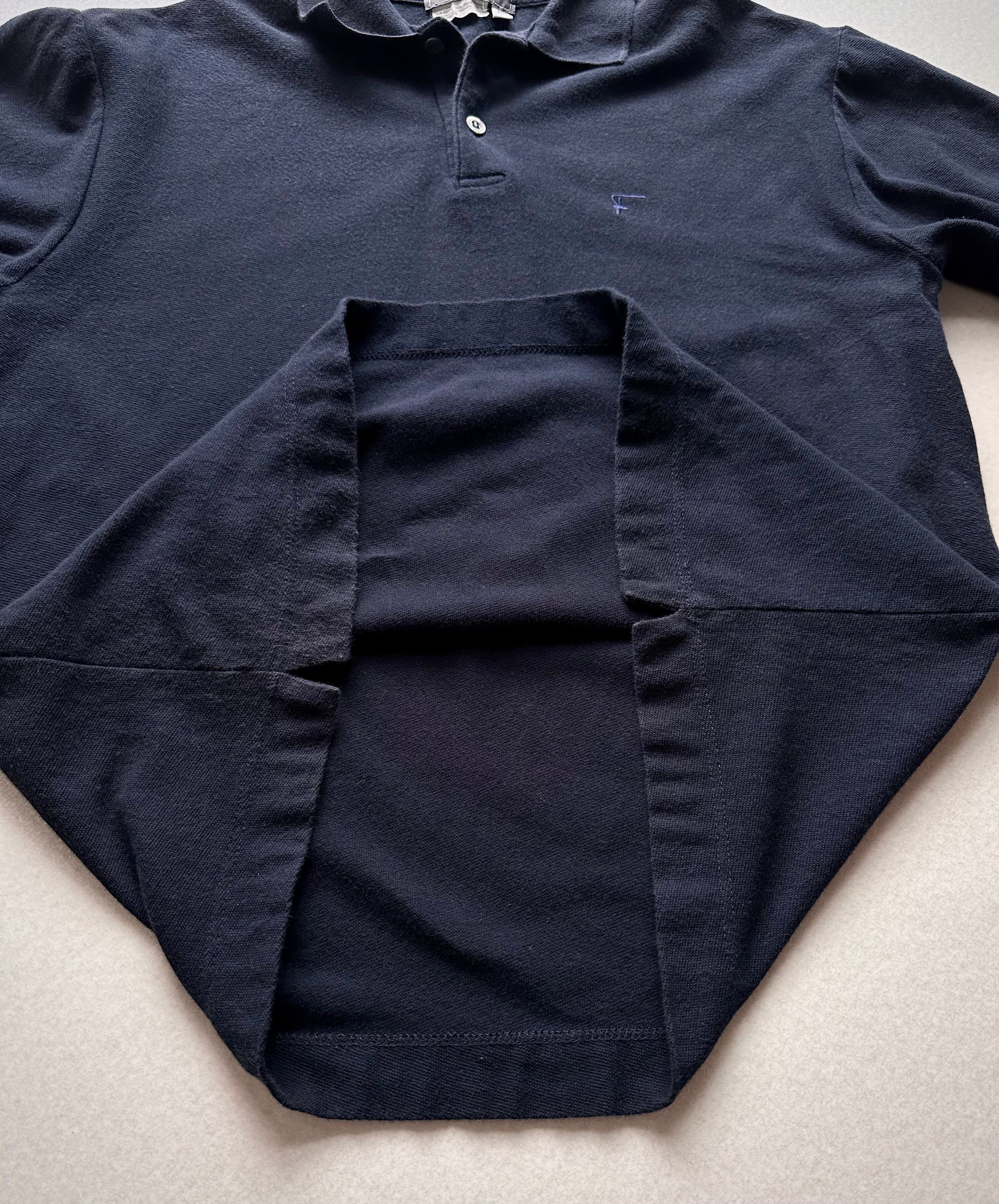フェラガモとしては数少ないウェアシリーズ、ブラックに近いダークネイビーカラーにブランドのロゴ刺繍のみとミニマルでシンプルな1枚です。