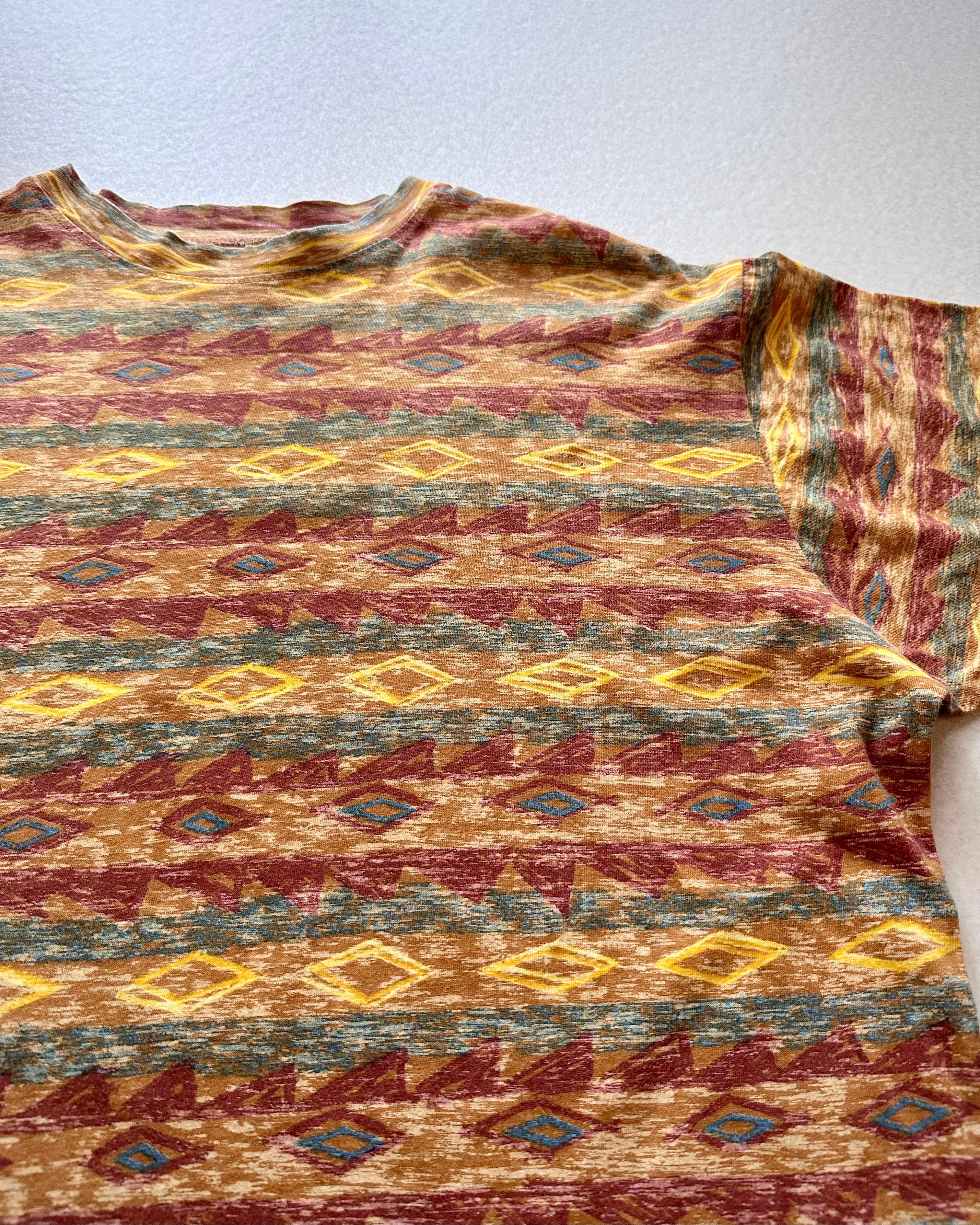 90s “ ACA JOE ” ATMIC PATTERN MULTI BORDER TEE OLD VINTAGE アカプルコ・ジョー 総柄 幾何学模様 マルチボーダーTシャツ オールド ビンテージ