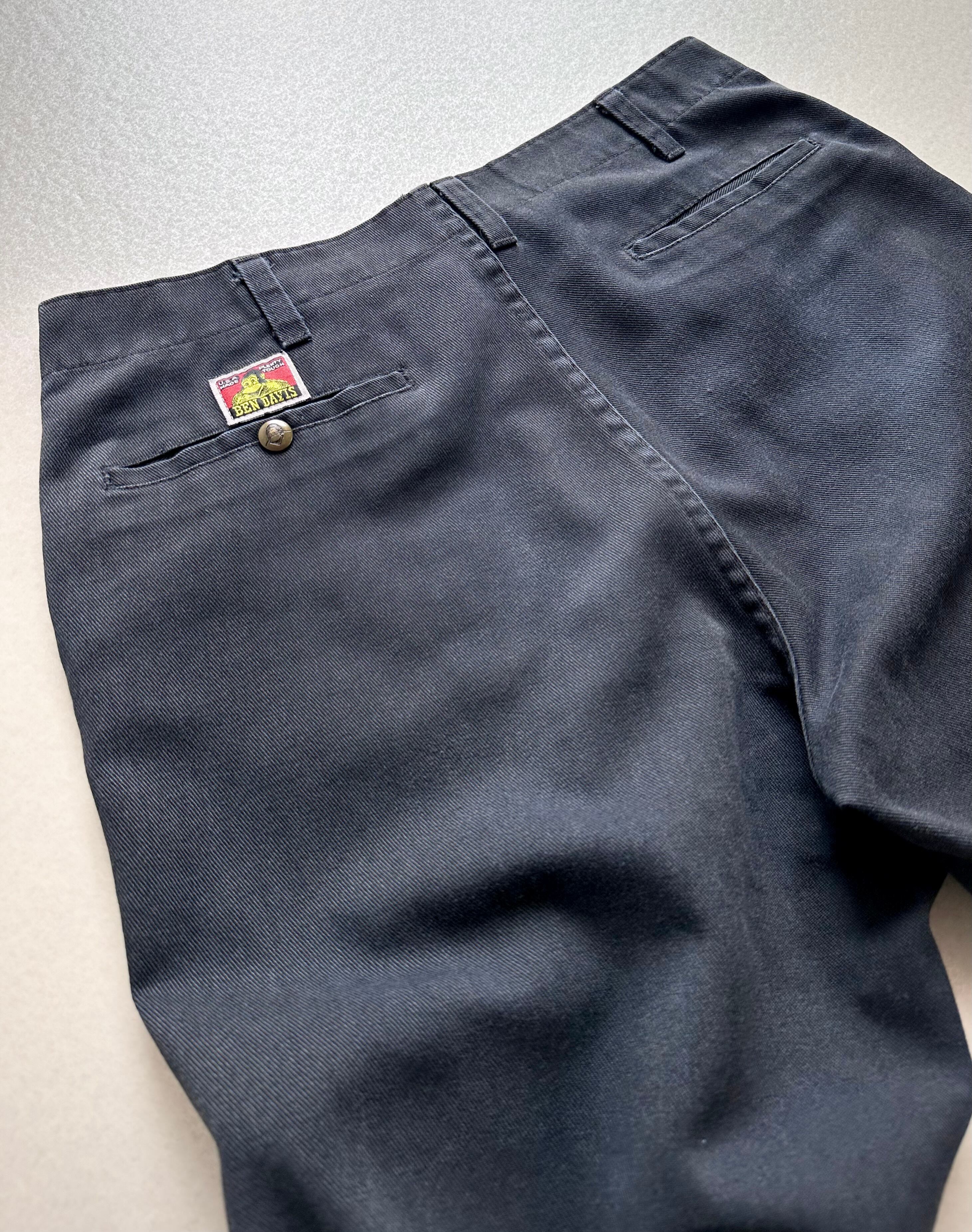 90s MADE IN USA “ BEN DAVIS ” BLACK FRISKO WORK PANTS OLD VINTAGE 。