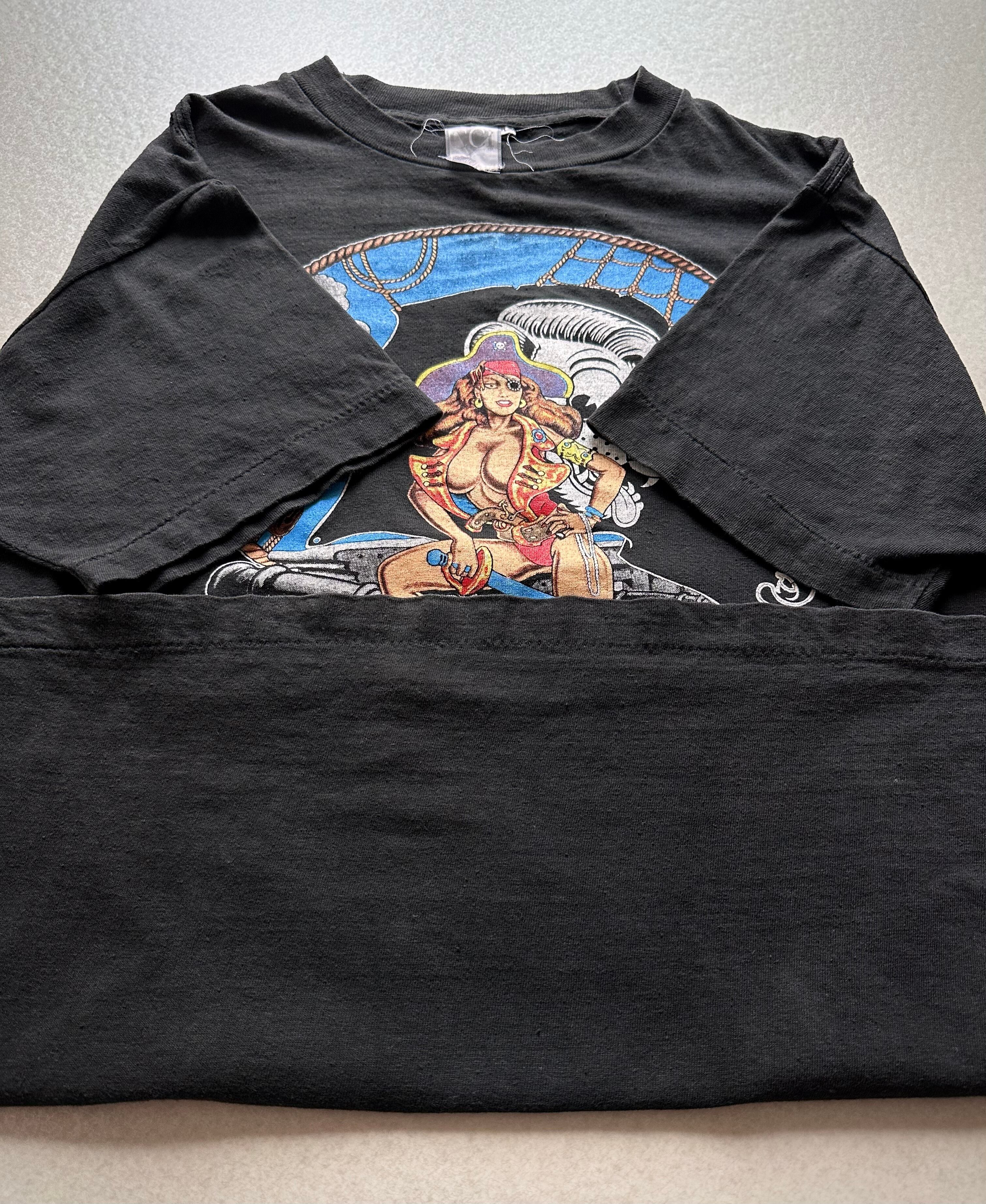 パイレーツモチーフにお馴染みのネコがデザインされたグッドプリント、バックサイドにもツアー都市がデザインされた珍しい両面プリントの希少な1枚です。