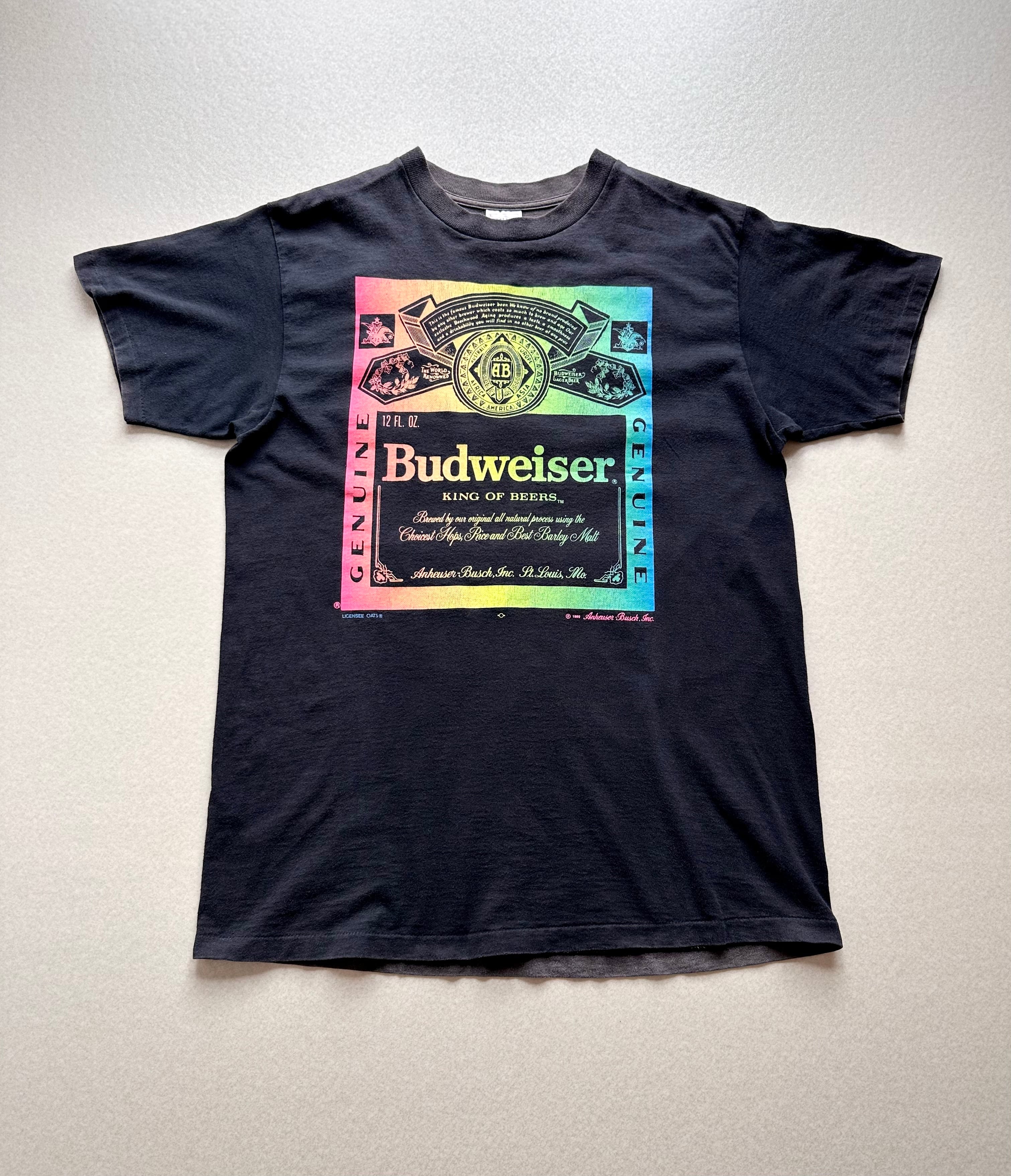 1992s MADE IN USA “ Budweiser ” RAINBOW PRINT TEE OLD VINTAGE 。