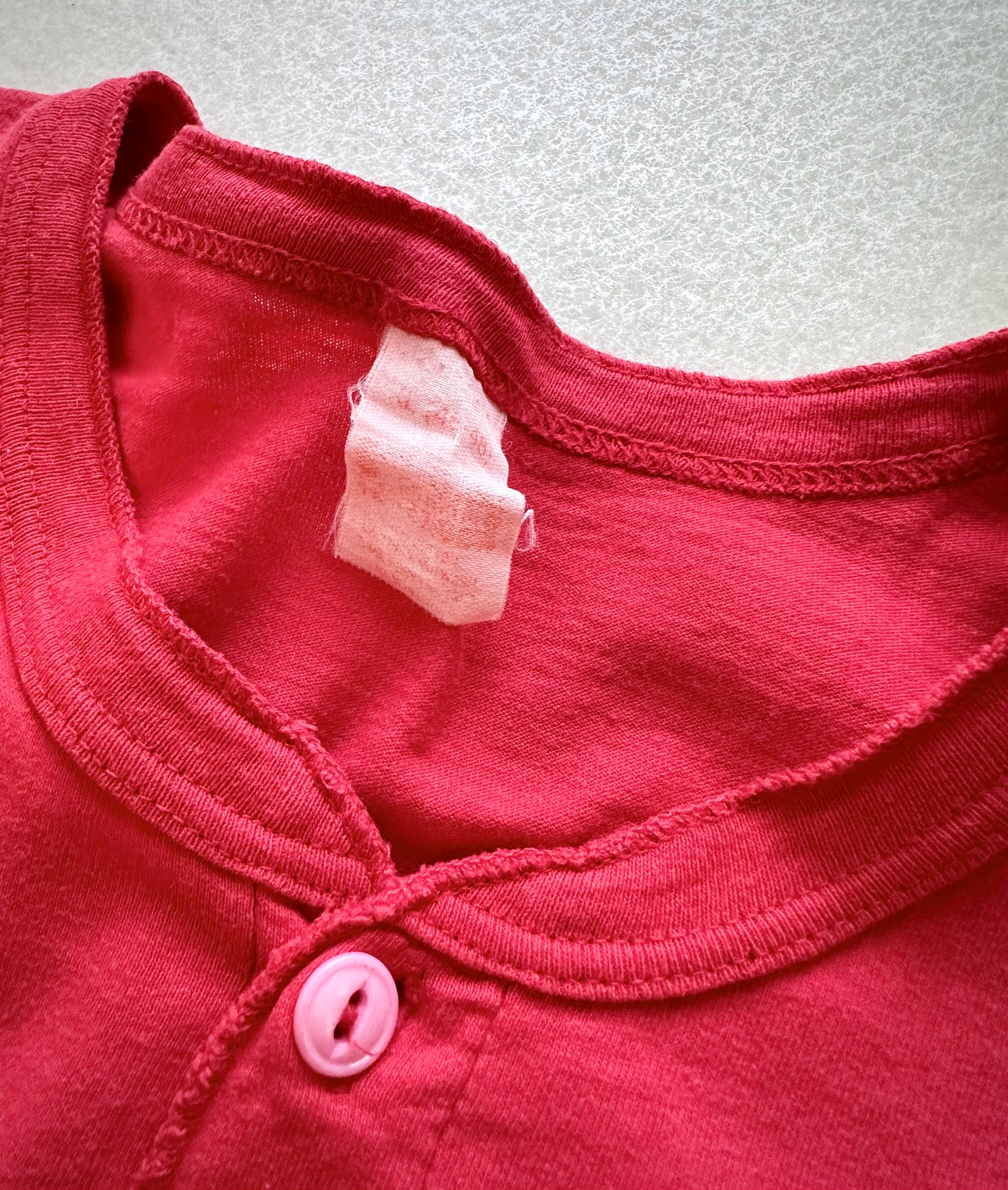 フロントには三つの猫目ボタンが付いたヘンリーネックスタイル、水平の袖付けやソフトで自然な着心地が味わえる4本針.フラットシームと当時ならではの魅力が詰まった拘り溢れる1枚。