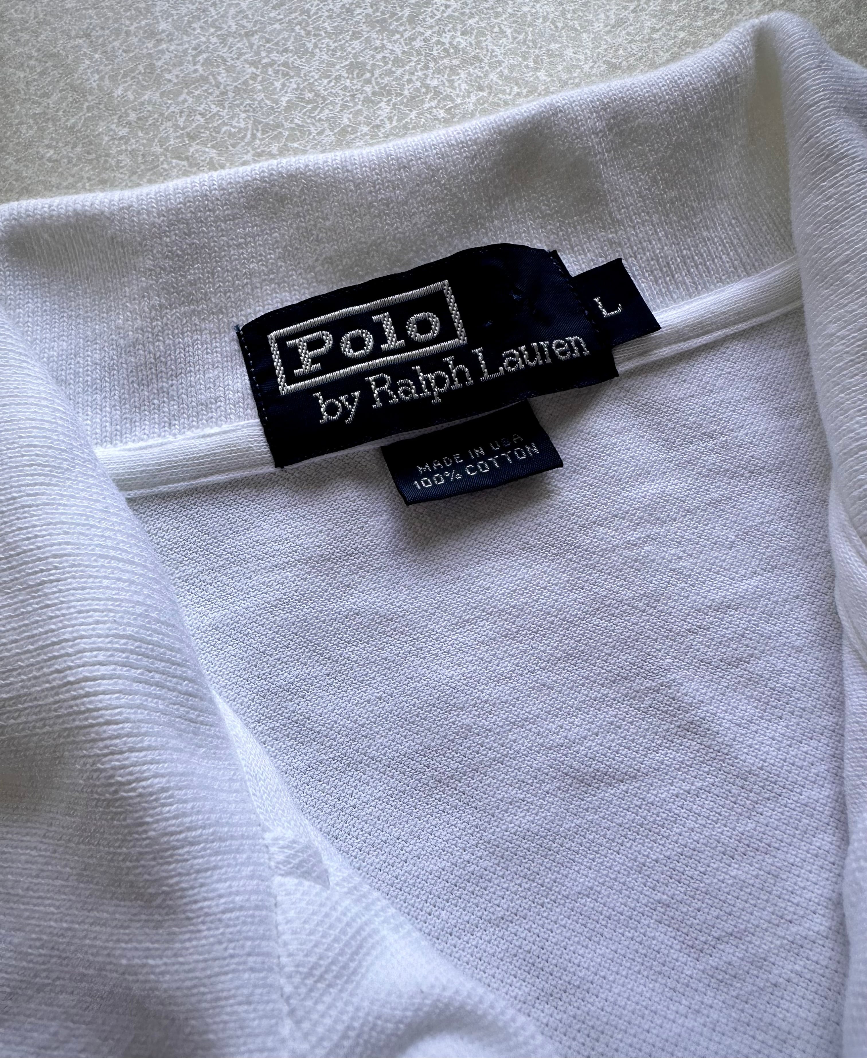 90s〜 MADE IN USA “ RALPH LAUREN ” CLASSICS POLO SHIRT WHITE L OLD VINTAGE 。