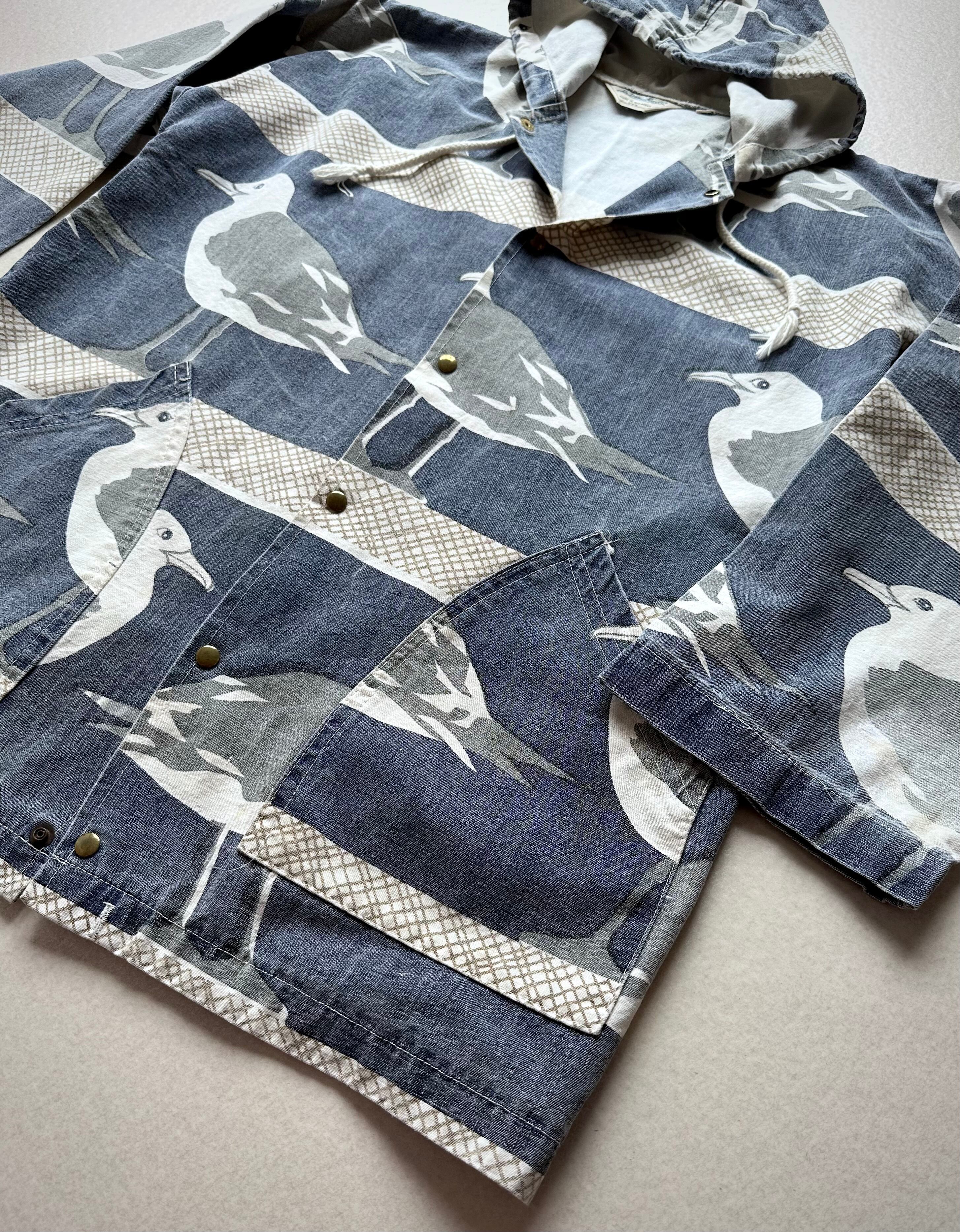 代名詞でもある人気のカモメパターンを纏ったスナップタイプのコットンパーカー、ガバッと羽織れるゆったりとしたシルエットに大きなパッチポケット,総柄の雰囲気やフェード感と昨今の気分にはピッタリな抜け感のある逸品シリーズ。
