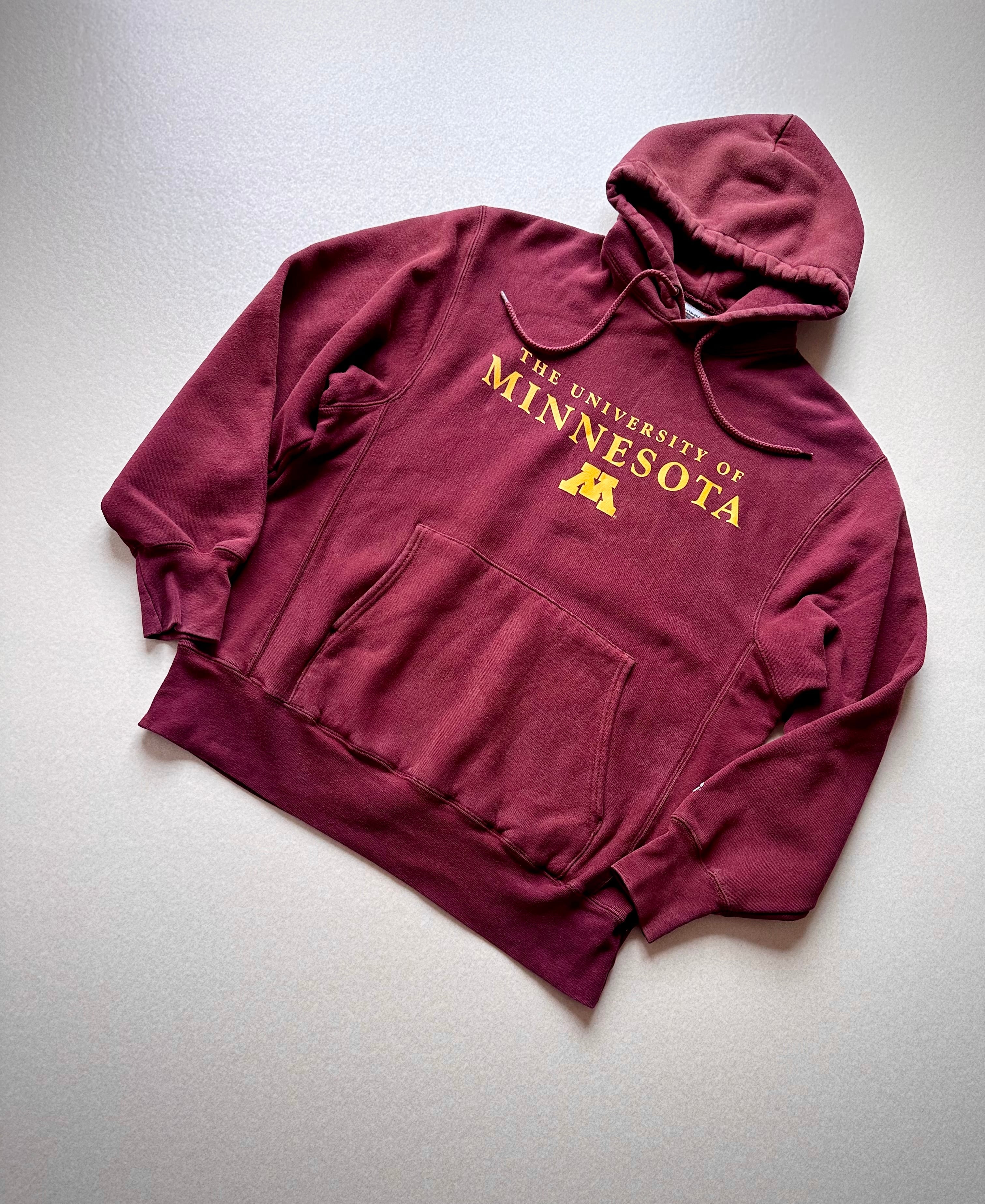 2000年代〜登場したPREMIUMと同型モデル、雰囲気の良いマルーンベースにイエローの“MINNESOTA”プリントと“REVERSE WEAVE”としては人気が絶えない王道のカレッジシリーズ 。