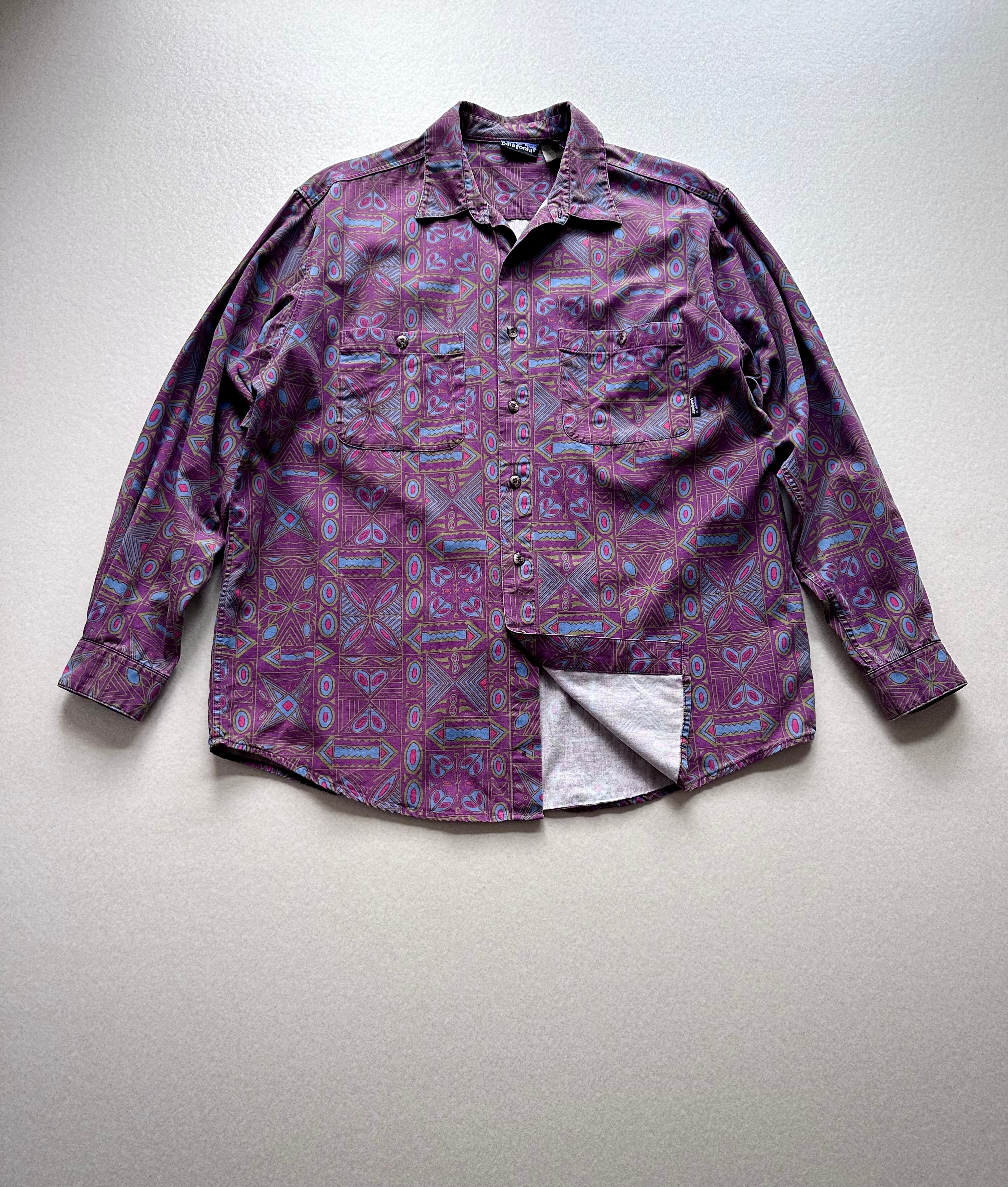 90s “ PATAGONIA ” R-TAG TOTEM PATTERN L/S SHIRT OLD VINTAGE 。