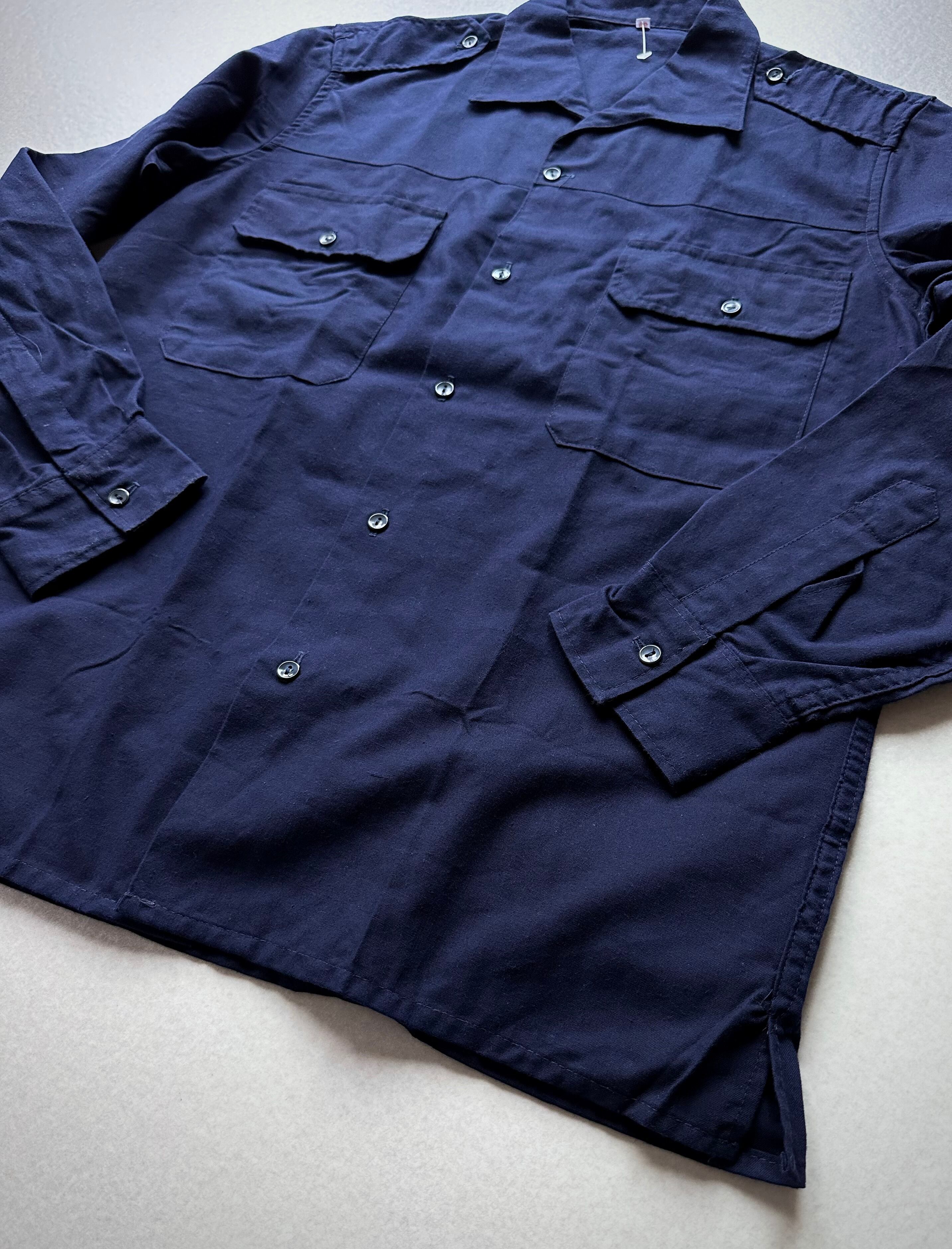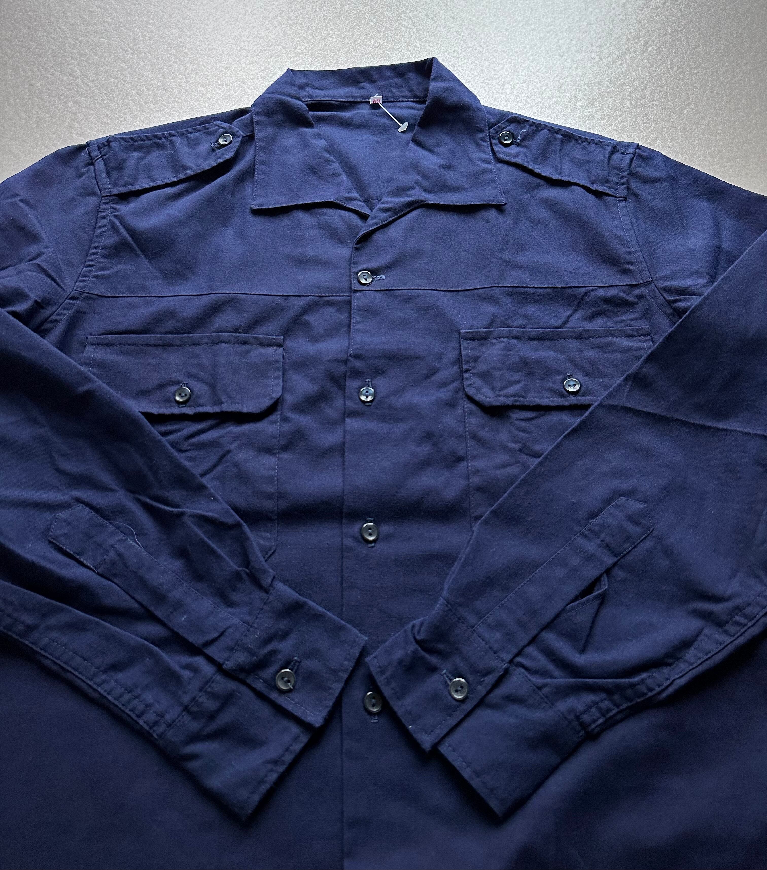 恐らく80s前後のスペイン軍にて採用されていたと思われるシンプルなミリタリーシャツ、表記はありませんがポプリンに近いコットン/ポリエステルベースにイタリアンカラーやボックスシルエットとツボを押さえた品のある1枚。