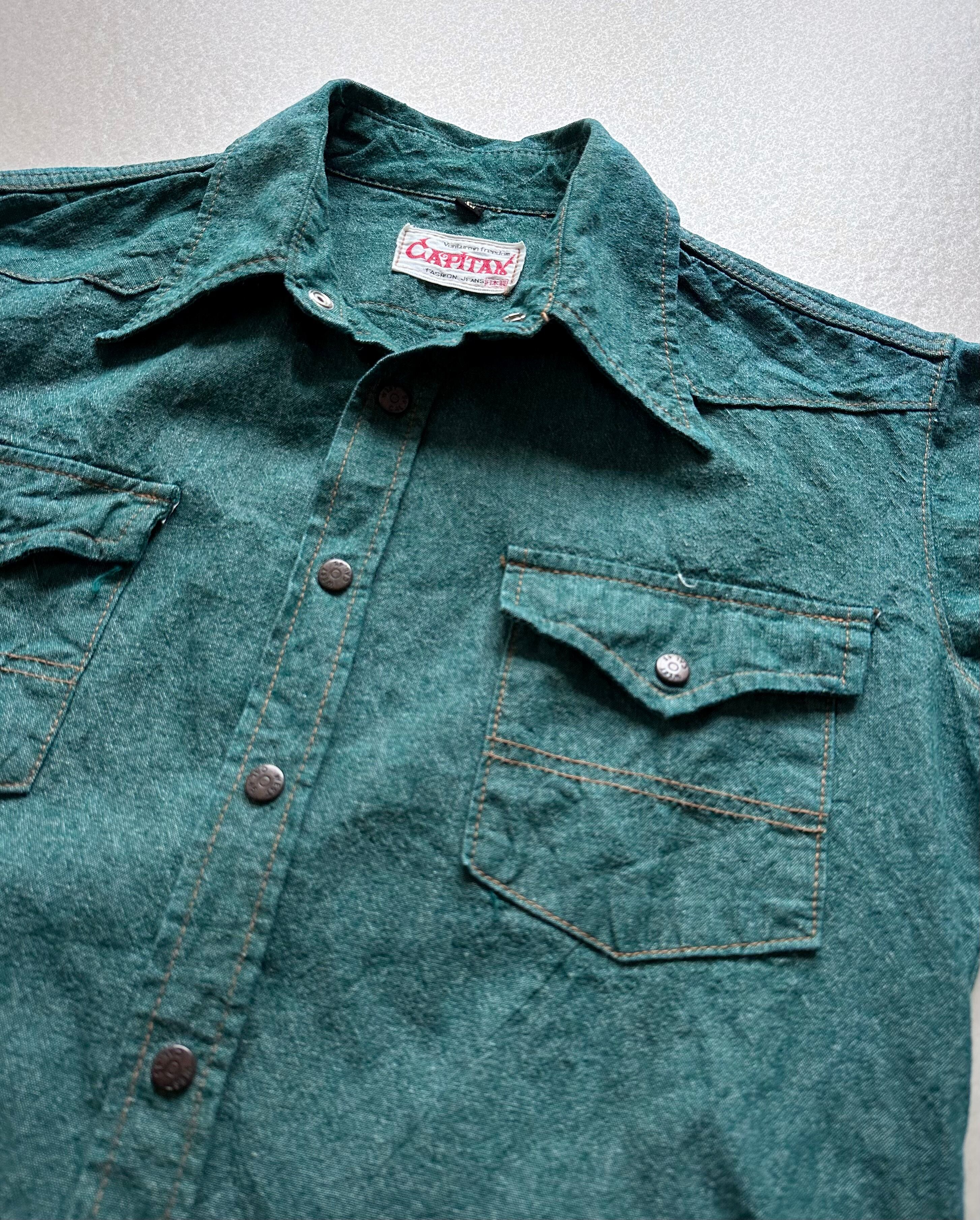 70s〜 “ CAPITAN ” GREEN DENIM SHIRT OLD VINTAGE 。