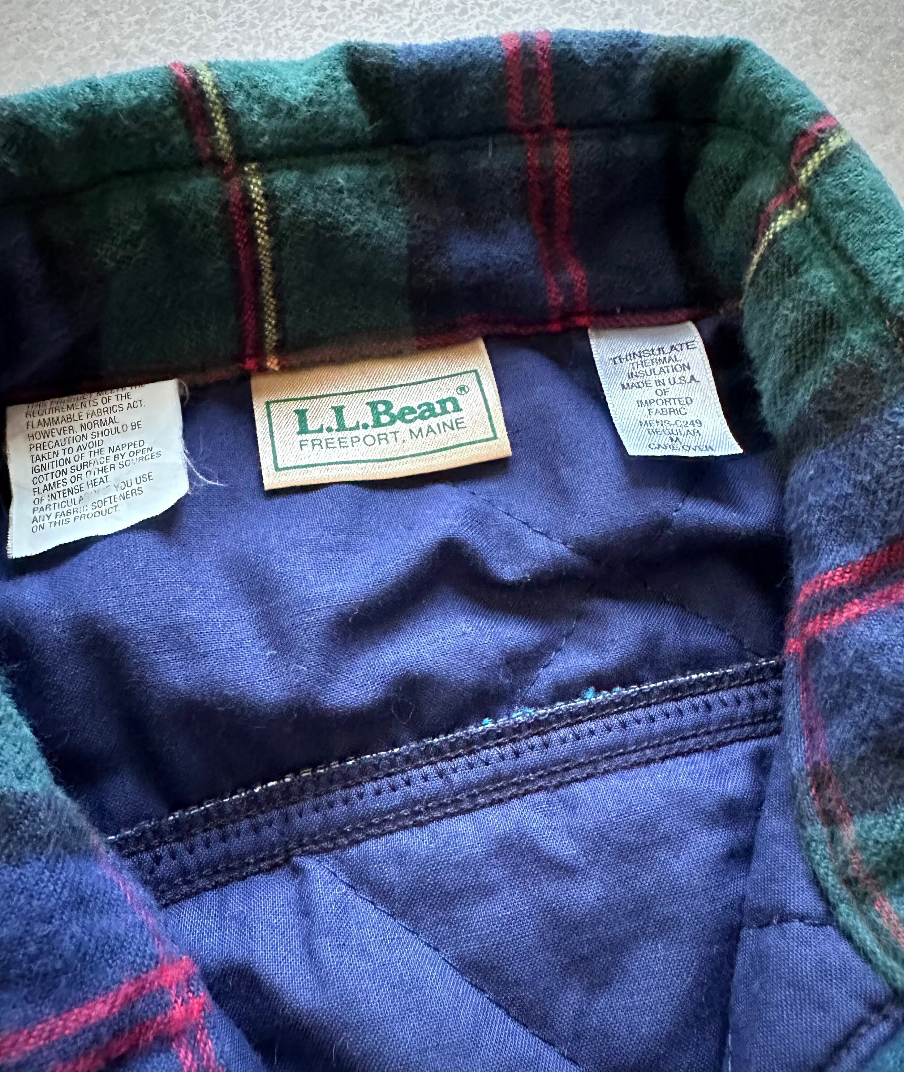 90s〜 MADE IN USA “ LL.BEAN ” THINSULATE PLAID FLANNEL SHIRT OLD VINTAGE 。