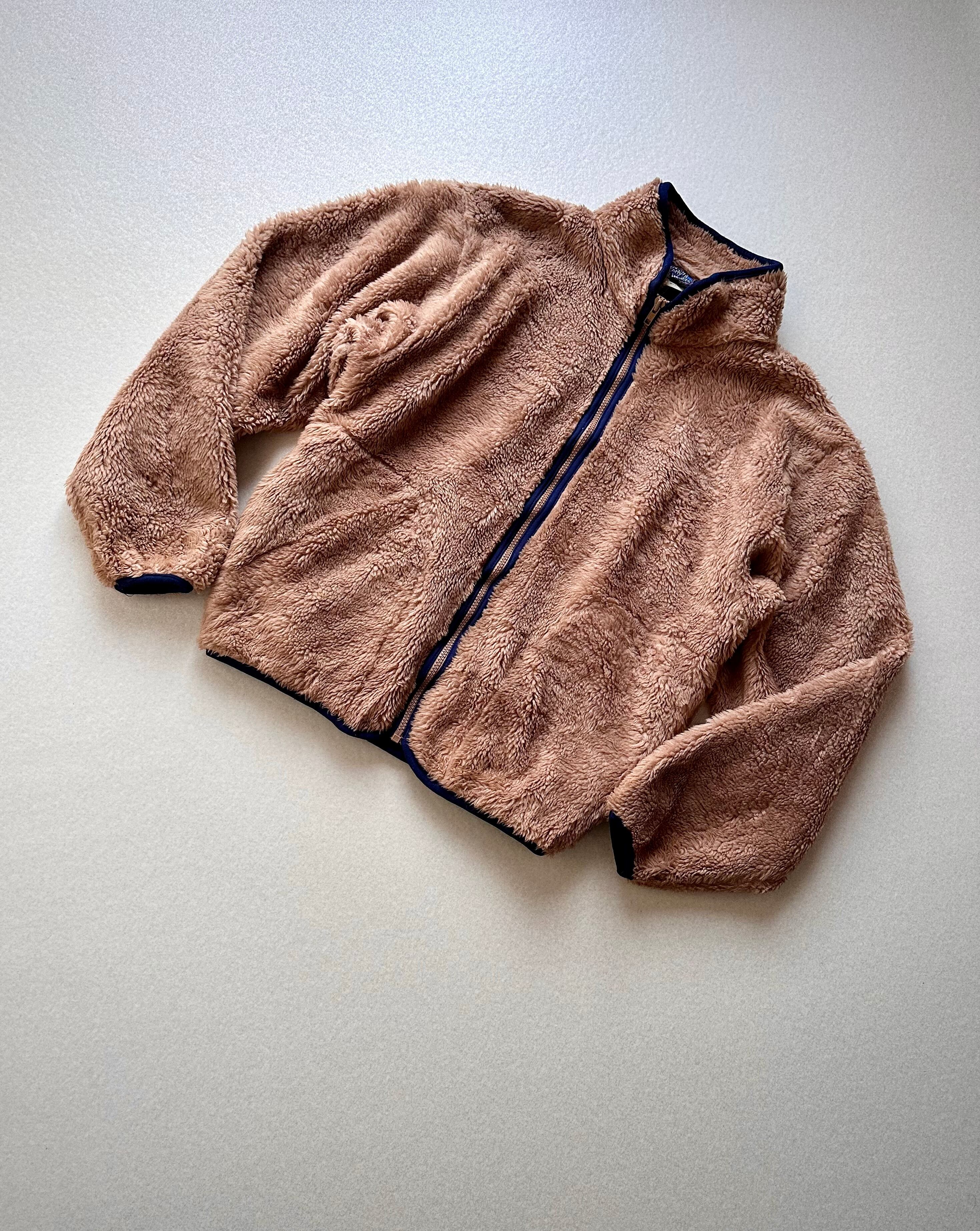 某ブランドの人気シリーズを彷彿とさせるフカフカで温もりのあるパイルフリース仕立て、ナチュラルなゴールドベージュタイプにスラッシュポケットのみとミニマルなデザインが魅力的なレアシリーズです。