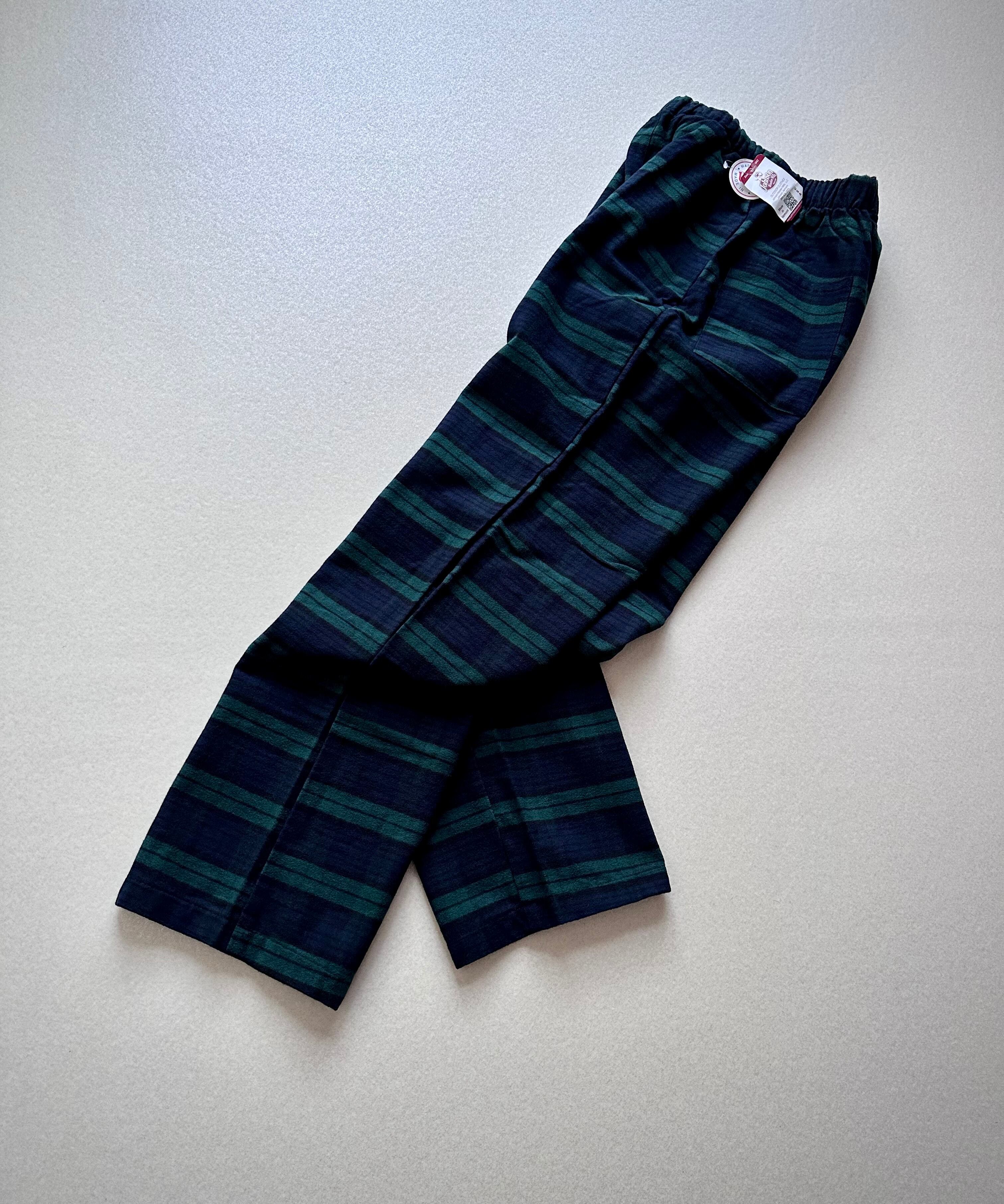 ウールをメインに展開する“JOHNSON”としては比較的珍しいコットン.フランネル仕立てのイージーパンツ、英国の伝統的なブラックウォッチを纏い程よい太さのストレートシルエットにネル特有の素材感がマッチした老舗ならではのクオリティーの高い1本です。