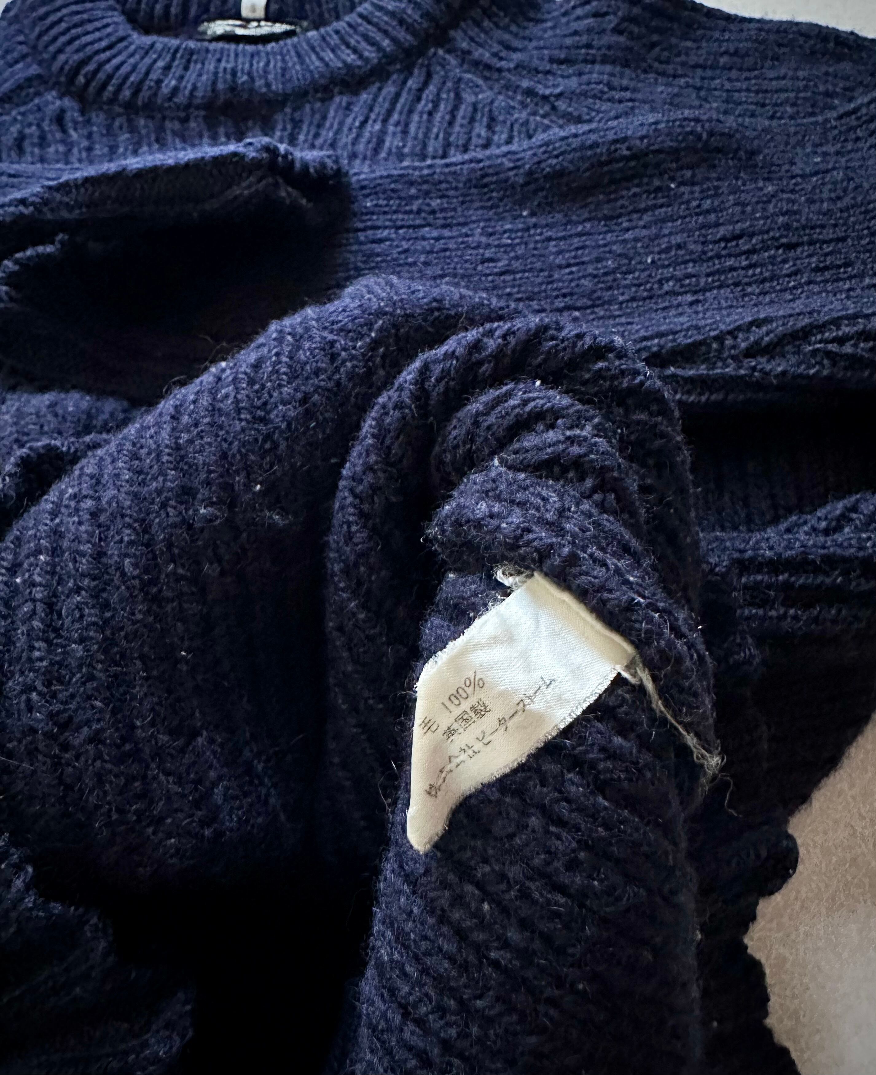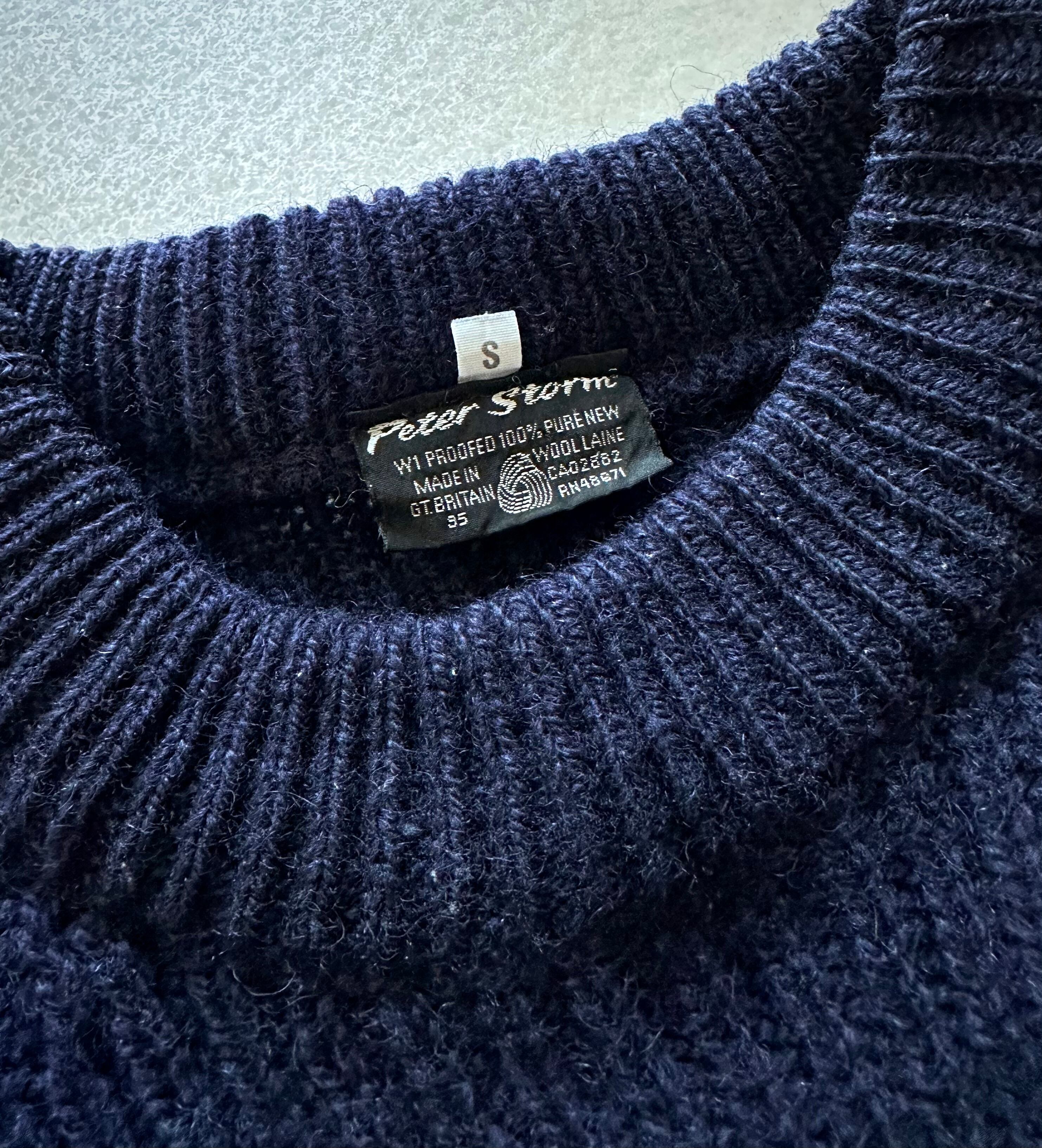 80s GT.BRITAIN製 “ PETER STORM ” WOOL RIB KNIT NAVY SOLID OLD VINTAGE 英国製 ピーターストーム ウール リブニット ネイビー オールド ビンテージ
