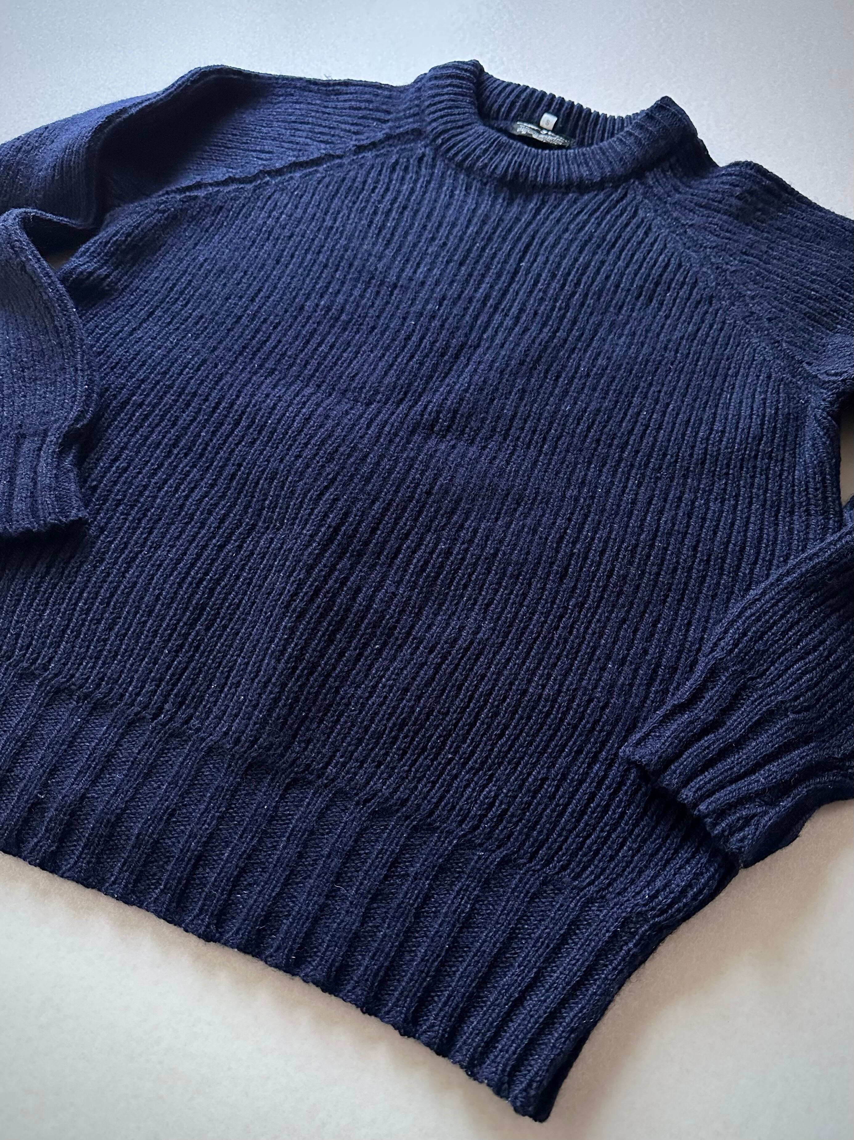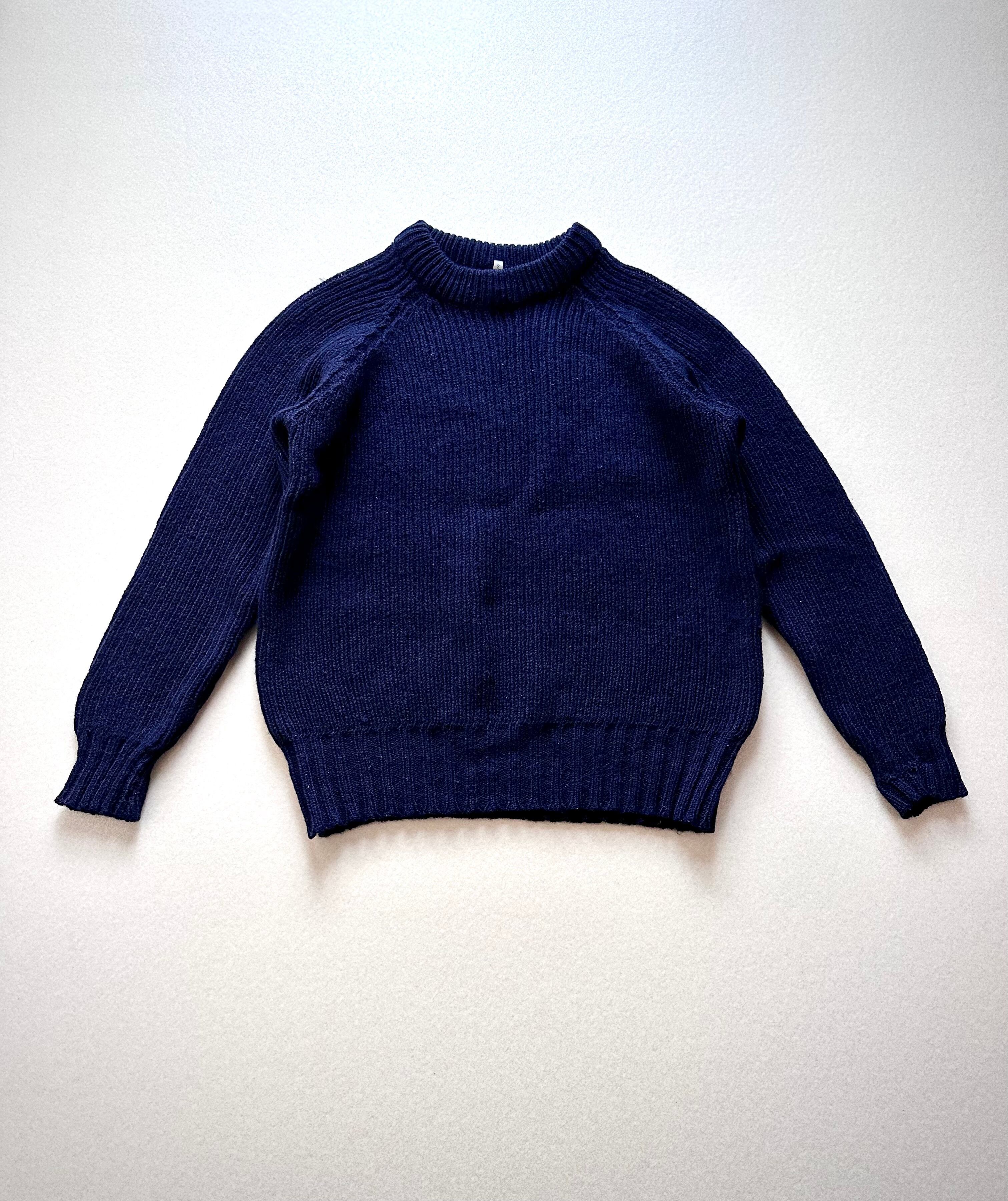 80s〜 MADE IN GREAT BRITAIN “ PETER STORM ” WOOL RIB KNIT NAVY SOLID OLD VINTAGE 。